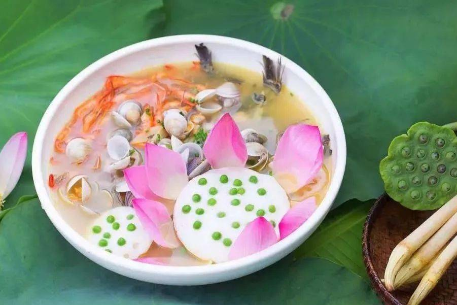 安龙荷花宴由独具传统地方风味、民族特色的菜点及七宝山珍和土特产创新而成,菜品以十里荷塘中盛产的优质荷花的叶、花、莲藕、莲子为主要原料,由厨师经过煮、炸、煎、炒、蒸等工艺精心制作而成,色彩呈现绿、黄、绿等五彩缤纷,可谓色香味形俱佳,不仅让人食欲大动,更给人一种美的享受。