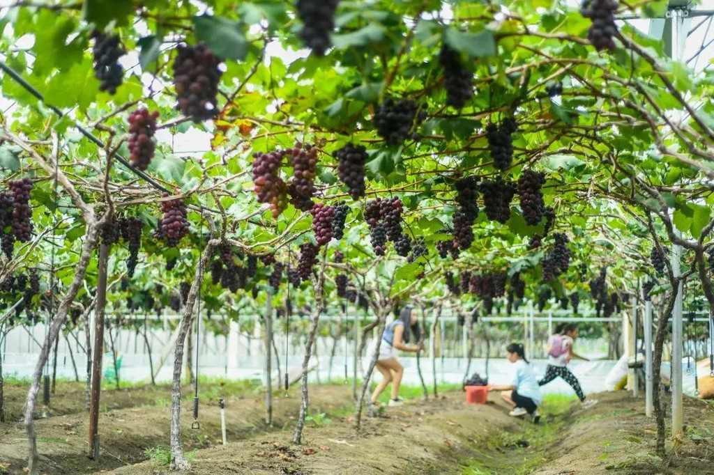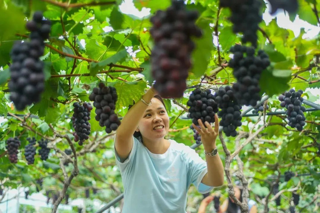 者跃村凭借适宜的气候、土地等自然条件和先进的种植管理技术,所出产的葡萄颗粒大、汁水多、口感好、保鲜时间长。每到葡萄成熟季,大批游客就会前往该基地体验采摘。