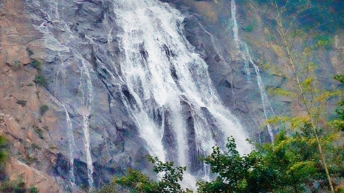 峡谷全长3.5公里,大小瀑布迭落成群,通天瀑落差达百米,