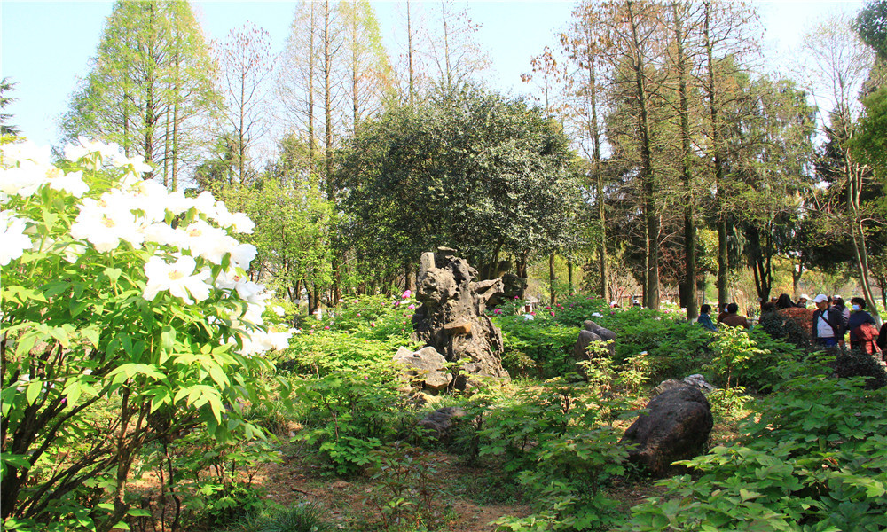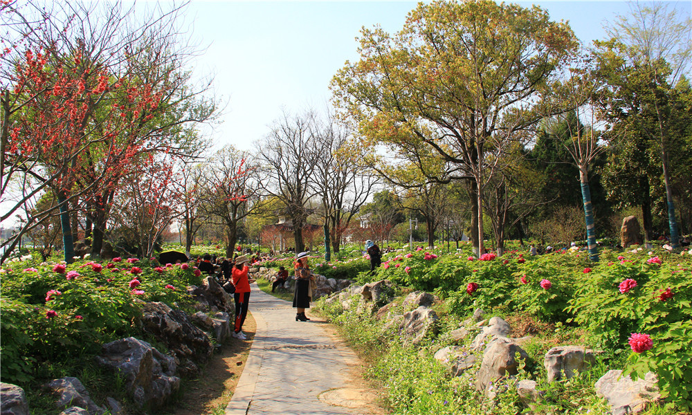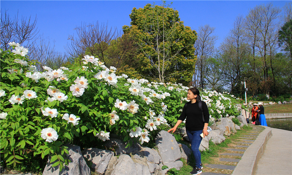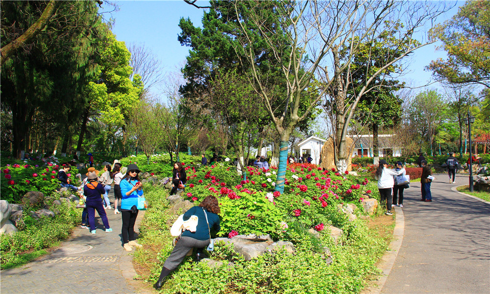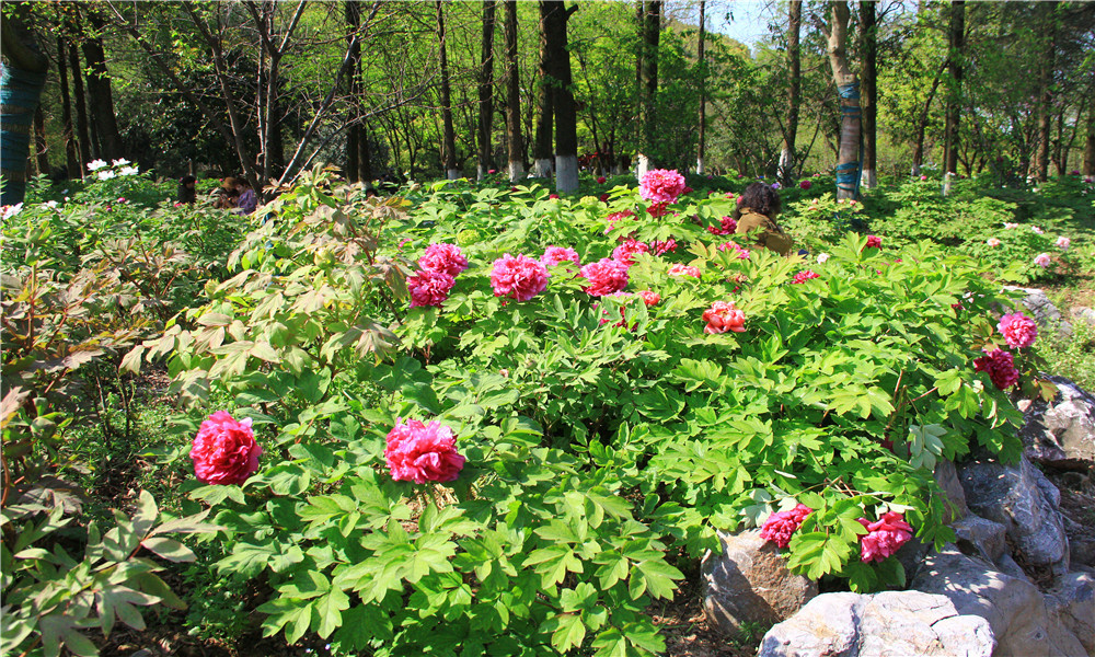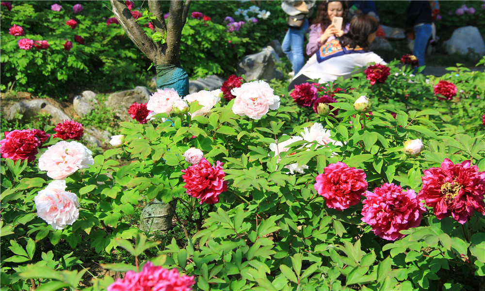 临近清明时节,牡丹园中牡丹竞放,游人如织。