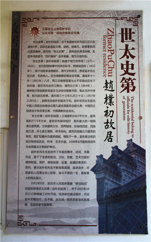 赵朴初故居,又名世太史第,位于安庆市迎江区天台里街。