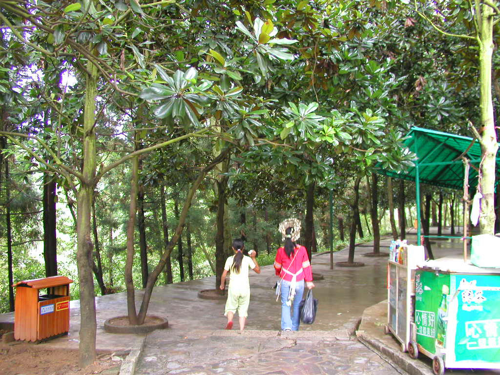 我们是后来绕到后边,从下边才看到飞瀑全貌的。那飞瀑果然气势不凡,声如雷鸣,形似倒海,银珠飞溅,蔚为壮观。可惜我的照相机镜头被水雾打湿,美丽的飞瀑都照得不好。