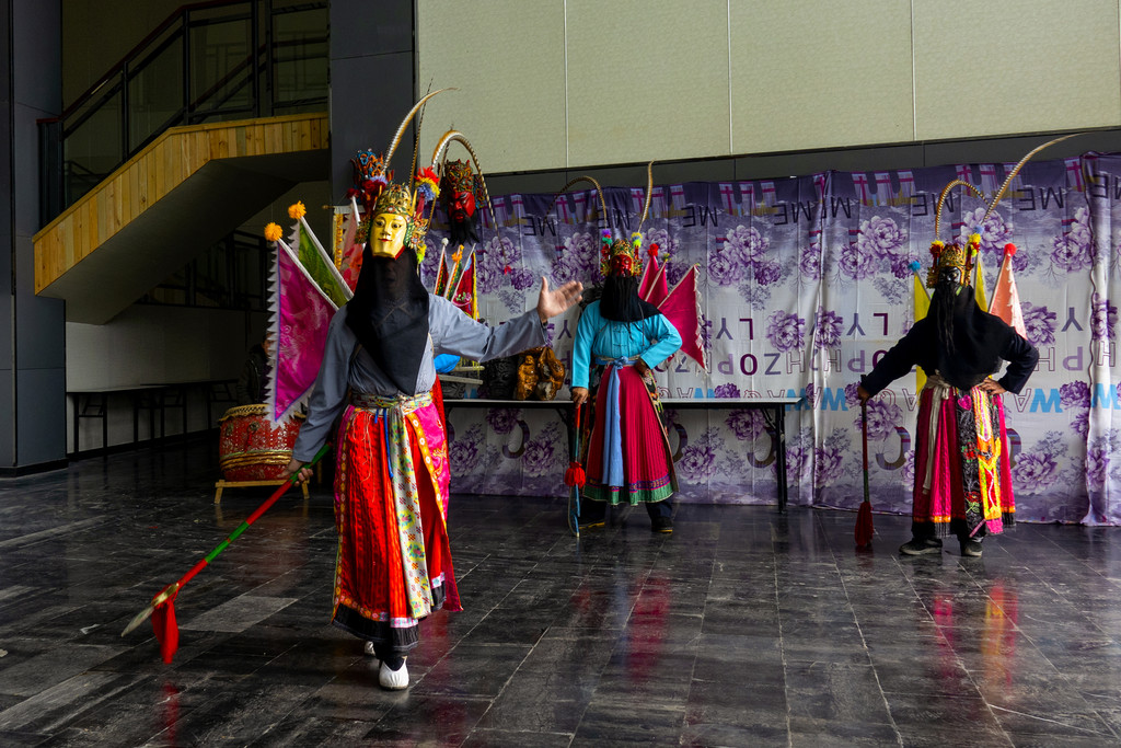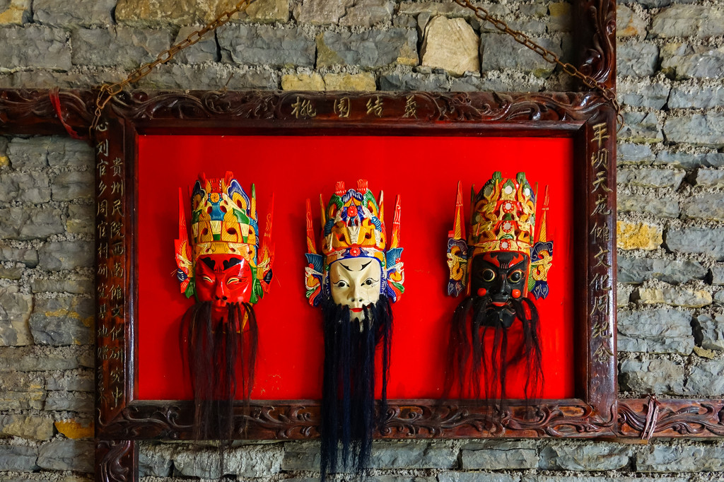 传统的地戏一年只跳两次,正月里跳为了迎新春,七月里跳为了贺丰收。随着天龙屯堡游客增多,演武堂每天都会有表演,主要上演《三国演义》和《精忠说岳传》里的片段。虽然每次只有10多分钟,但演员们边唱边讲很是热闹,那些传神的面具也更加鲜活起来。