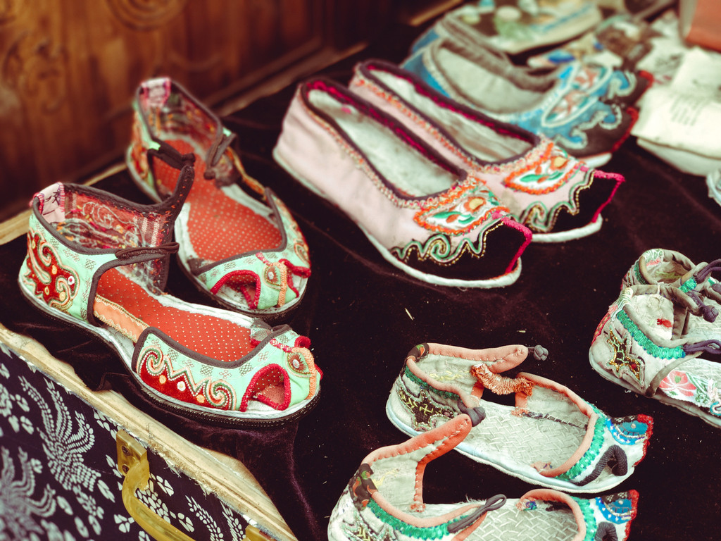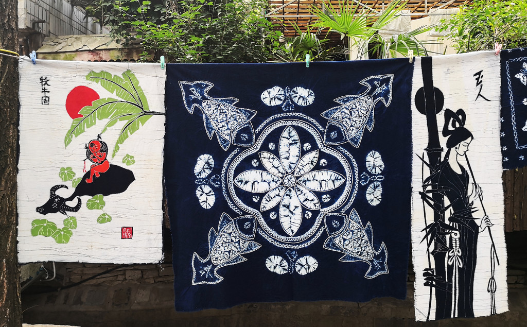 除了建筑之外,屯堡人的服饰也颇为抢眼,总能看见三三两两身穿蓝色宽袍大袖,用或白或黑色布巾包住前额的妇女坐在自家门前做手工。这种装扮便是叫做“凤阳汉装”的明朝服饰了,也是由江淮一带传过来。它最大的特点便是无冬夏装之分,只在内部增减衣物,几百年来在外形上并无太多改变。
