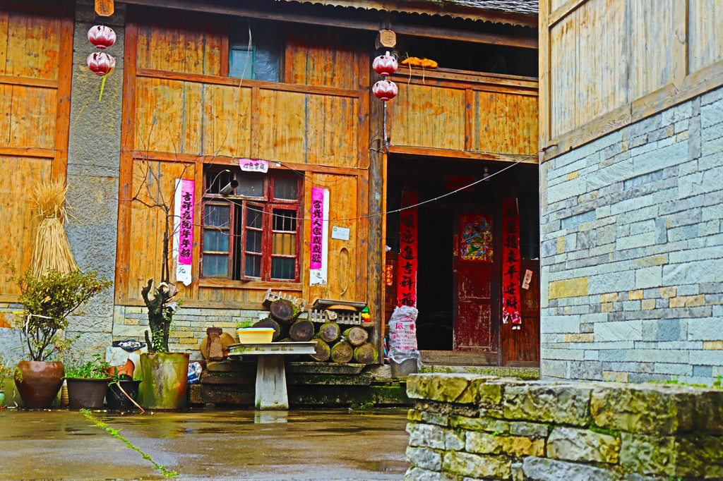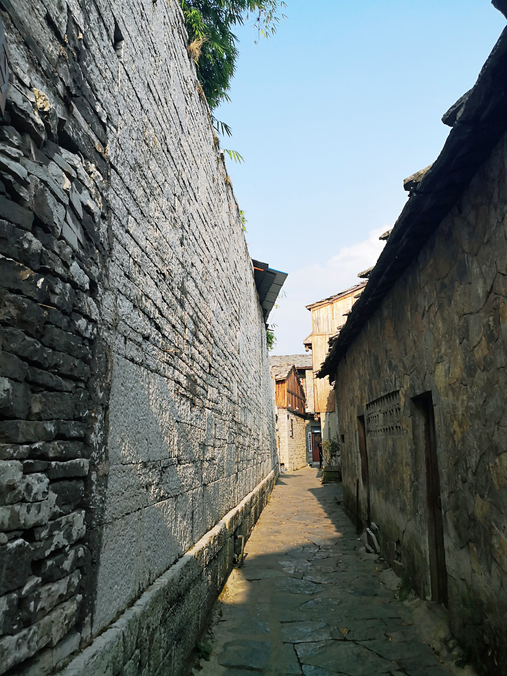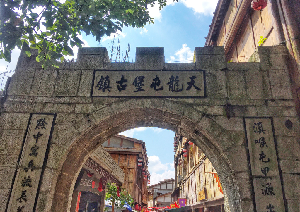 天龙屯堡位于平坝县,为西进云南咽喉之地。初来天龙屯堡,外表看似粗犷,实则各种建筑自成一体,街道纵横交错,粗中有细。石头搭建的碉楼组成了一座座小的四合院,窄小石拱门仅容两人并排出入,碉楼或围墙上设有射击孔,当年为了方便屋内人观察和攻击入侵者专门留下,与住房合二为一。