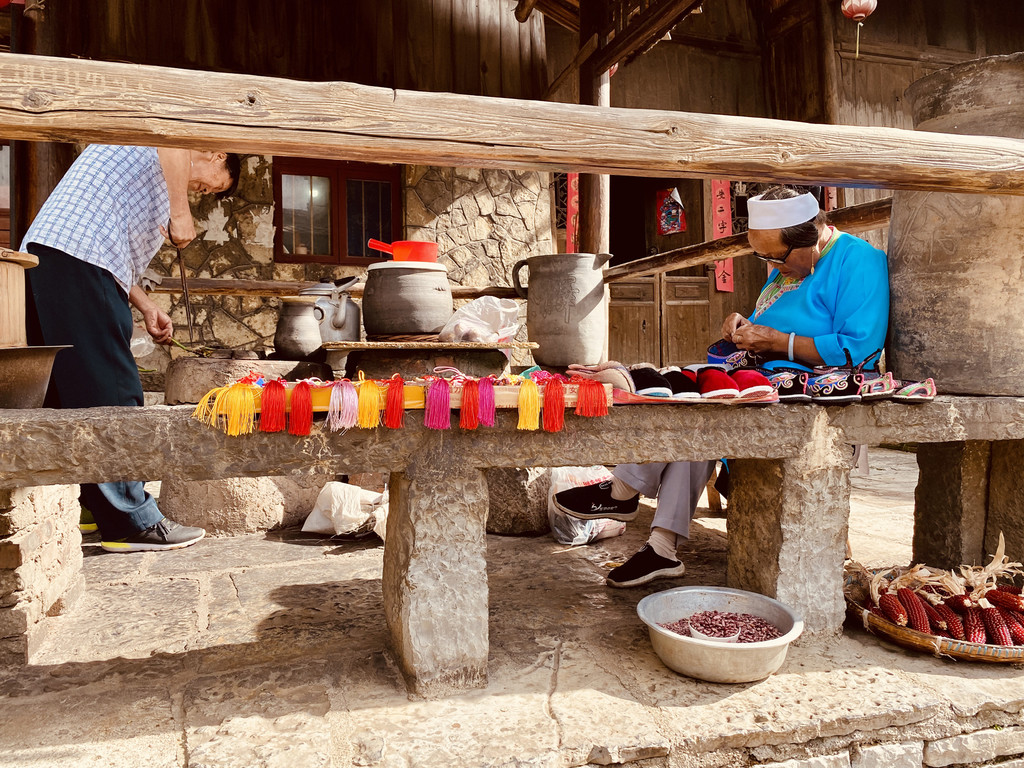 在跟屯堡妇女攀谈的过程中,感受最深的是她们的口音,发音快且带着卷舌音,听起来很有军人的阳光之气,又像在唱戏,她们叫未出阁的姑娘叫“小娘娘”,也会说kao(敲)打,颇具“吴风”。询问祖籍是哪里,大多数会说来自南京应天府。