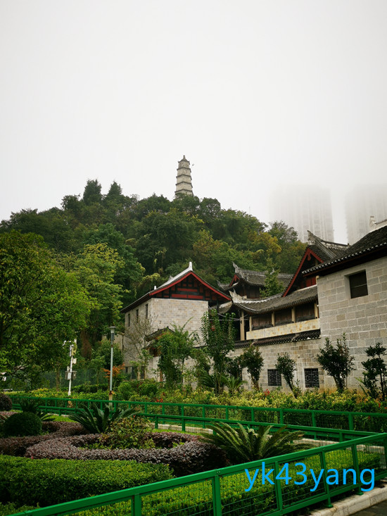 现在的圆通寺前建有广场。一群大妈正在跳着广场舞,很使人感到亲切。在这里可以仰望圆通寺背后的西秀山,以及西秀山上的西秀山塔。
