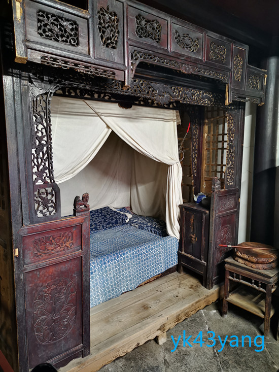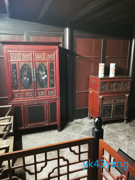 穿过一进的正屋,来到第二进庭院。正房和厢房也都是木结构的两层楼房。现在是“谷氏旧居陈列室”。陈列室内复原了一些谷家生活的场景,当然都不是原物。还有一些谷氏家族的照片,很是珍贵。