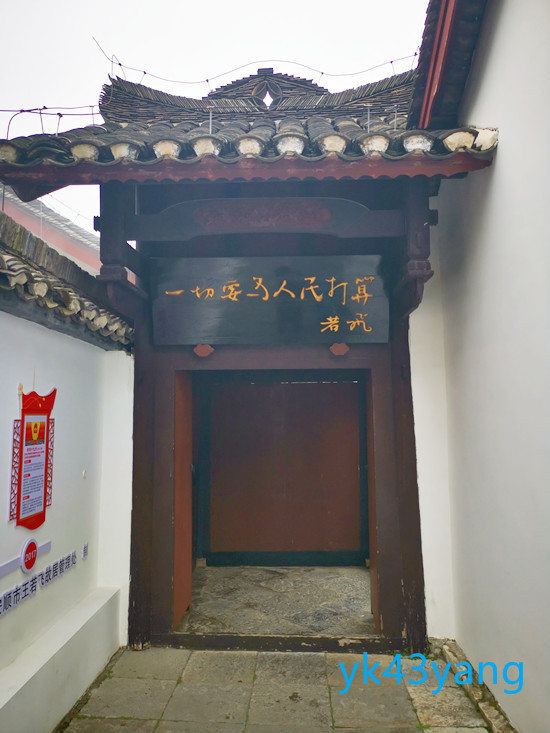 这是故居的大门,门上的“一切要为人民打算”几个字,落款为若飞,不知道是否为王若飞的亲笔。