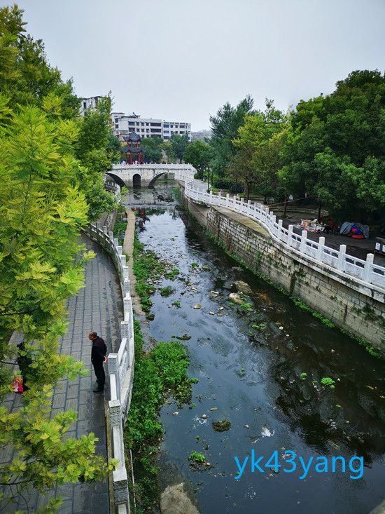 从武庙去往王若飞故居。按照百度地图的指引,开始步行。这是贯穿安顺城的“贯城河”,河面上的石桥叫做“南门桥”。