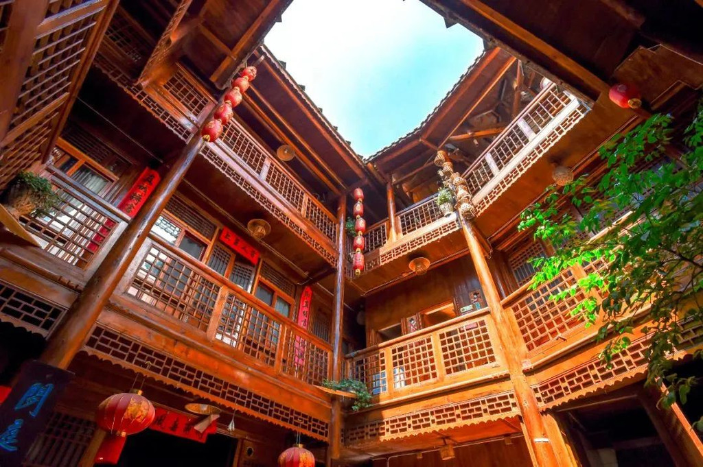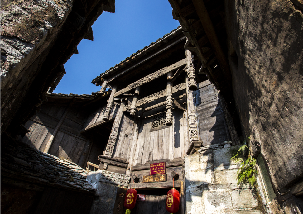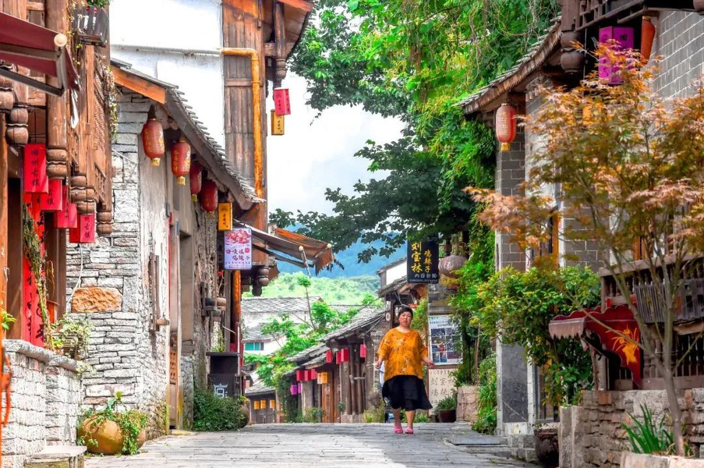 街道上随处可见的木质房屋、层叠错落的石院墙、青翠欲滴的植物,构成了旧州古色古香的建筑风格。