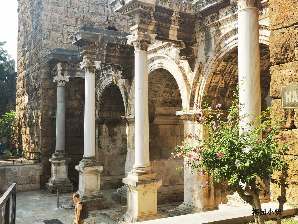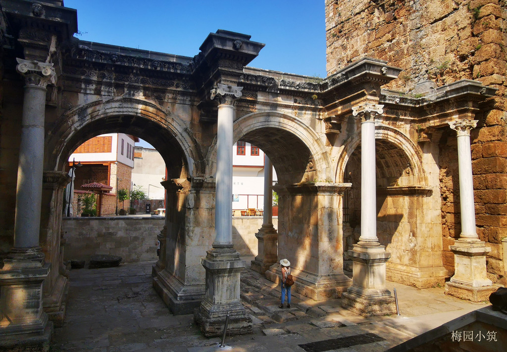 哈德良门位于老城的入口位置,是公元130年罗马帝国的哈德良皇帝为了几年对该城的统治而下令建造的。哈德良门是用白色大理石修剪的三重拱门,城门造型与罗马凯旋门相仿。城门前有四根科林斯柱,非常精美。之前城门上方有一尊哈德良雕像,如今已不复见。