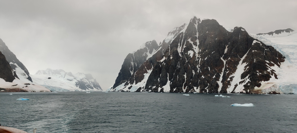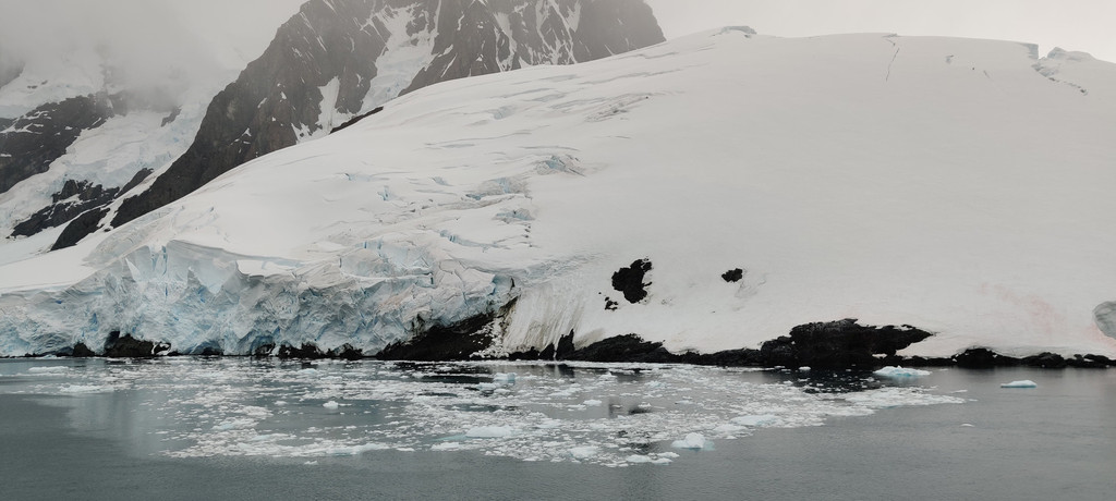 1月27日上午,依然没有阳光,室外气温3°。我们8点20分先行登陆尼克港,9点50离港巡游。正前方高处已融化的雪山处,是我们登陆的终点。