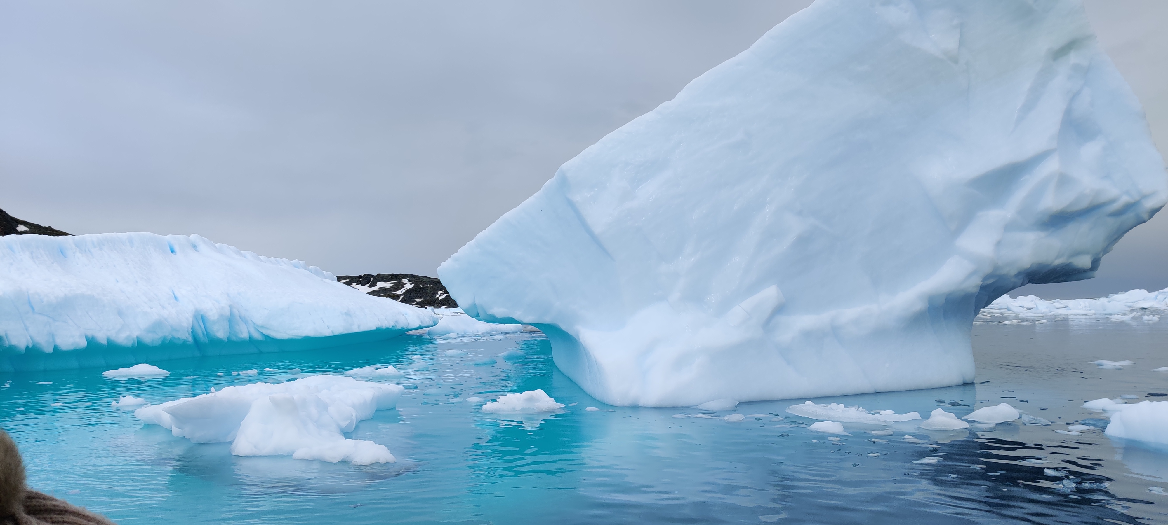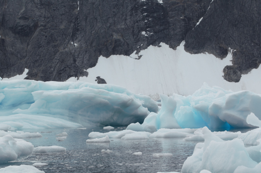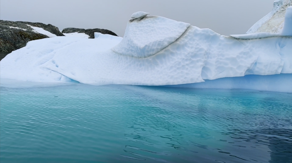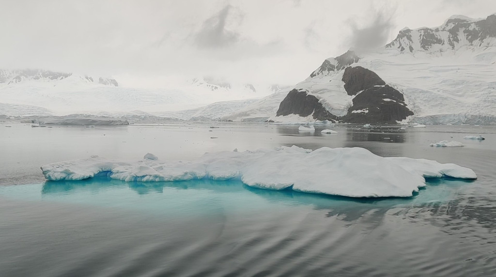 安德沃德湾的蓝冰,是我们几天来在南极海域,见到的最大、最蓝、最美的一块蓝冰。整个蓝冰呈凹形,似一个小小港湾,雪白的冰层下,那幽幽蓝光随着水的波纹,时浅时深,忽明忽暗,像水下游动着蓝色的精灵。南极飞行员——理查德.伊夫林.伯德海军上将这样描述南极:“我感觉自己落入另一个星球,或是误入了另一个人类未探索过、从未有过的记忆纬度”。冲锋舟马达的轰鸣声已停止,目睹旷世美景,我们每一个人都屏住呼吸,似乎时间在这一刻凝固。