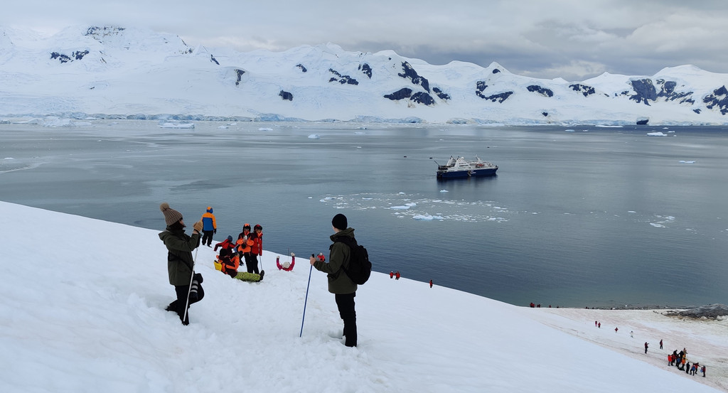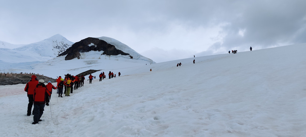 尼克港安排登山,意义非凡,这是此程唯一一次登山活动,当双脚踏上这片土地(实为雪地)时,前所未有的成就感油然而生,所谓南极行,不仅仅是在南极洲的海域,航行和巡游而已,登陆与南极大陆相连的岛屿更重要。昨天我们登陆的彼得曼岛、乌克兰科考站等,都仅仅是南极的岛屿,不与南极大陆相连。而今天所登陆的尼克港,是所有极友共同的愿望与目的,这里是世界的第七大陆,我们终于如期而至。