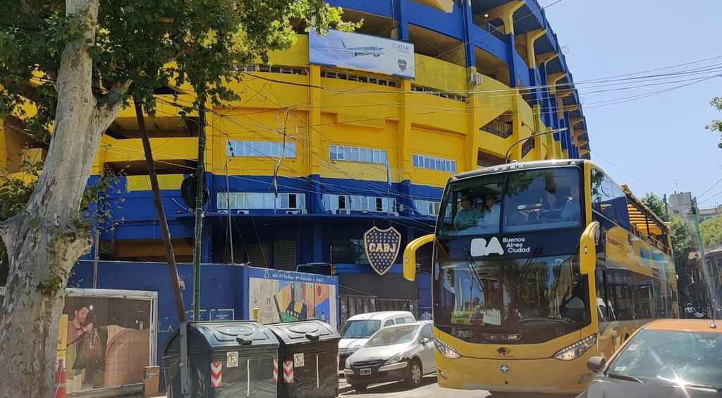 博卡青年队主场也叫“糖果盒”可容纳观众三万八千人。场外周边路窄人多车水马龙,想给“糖果盒”拍一张完整的照片都很难。