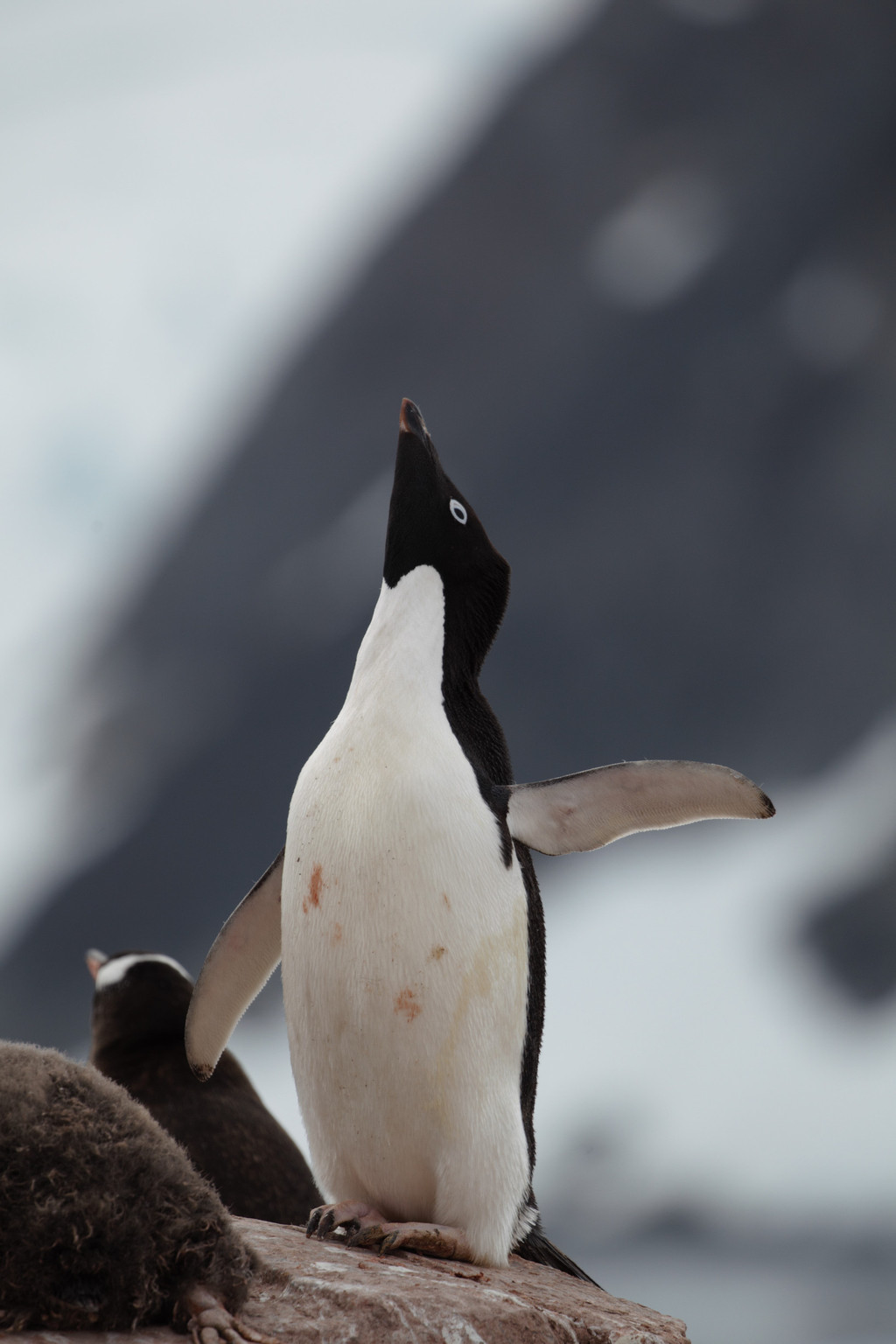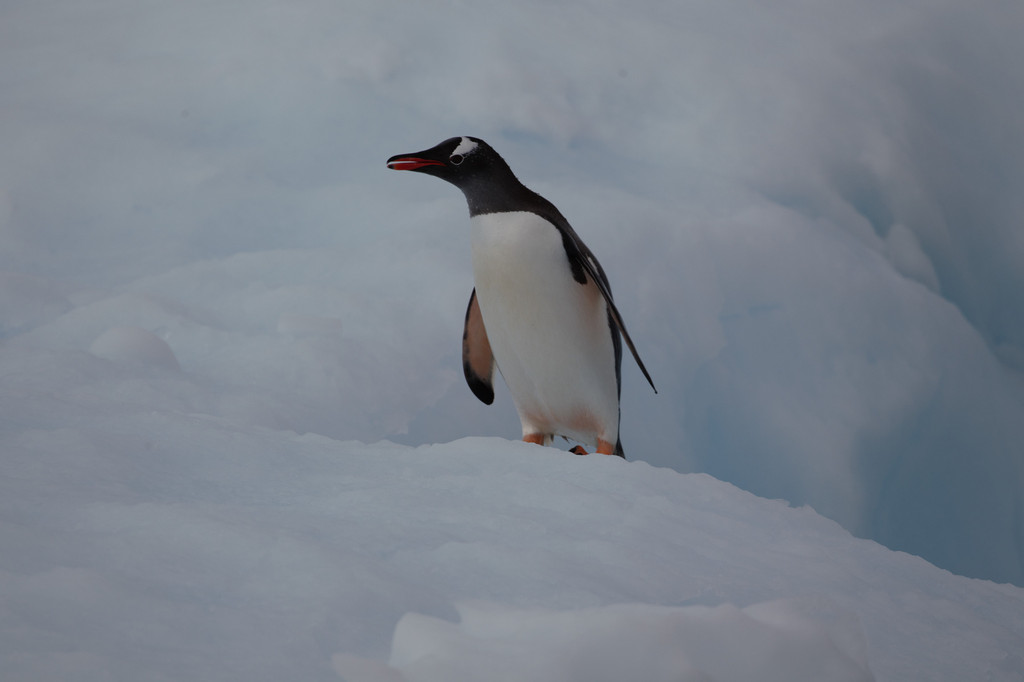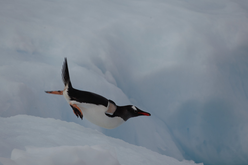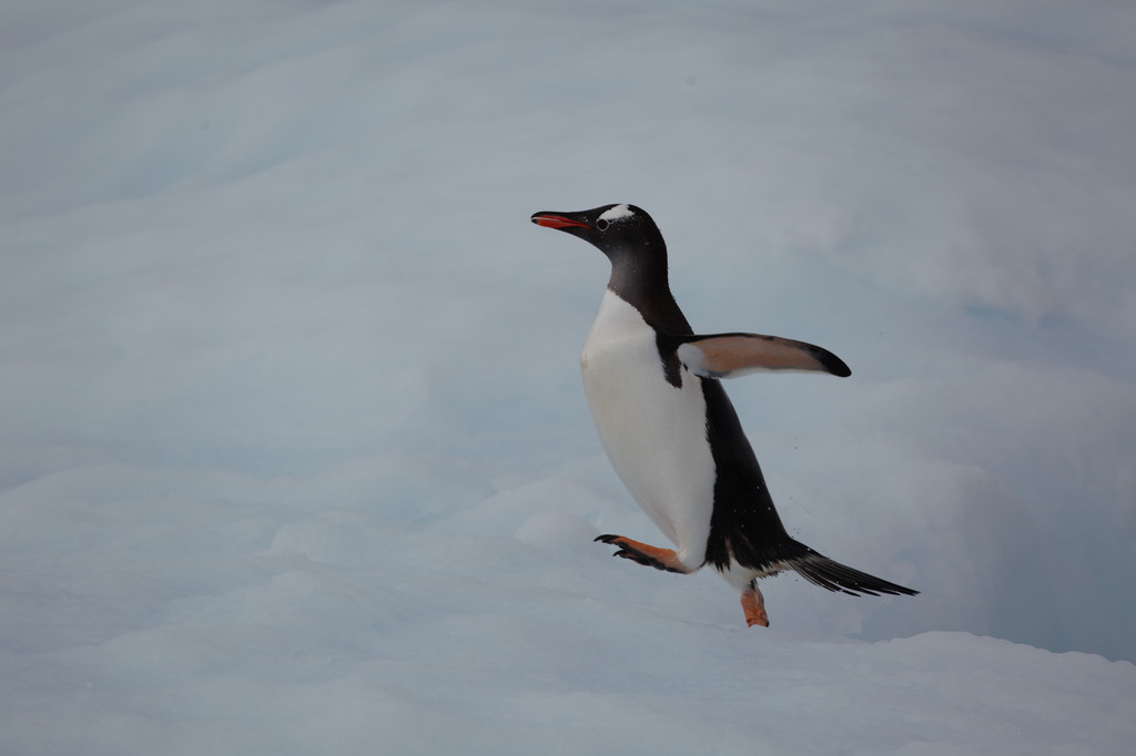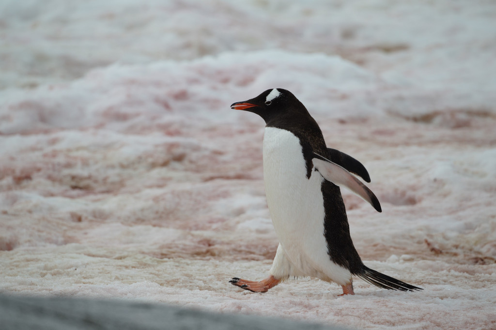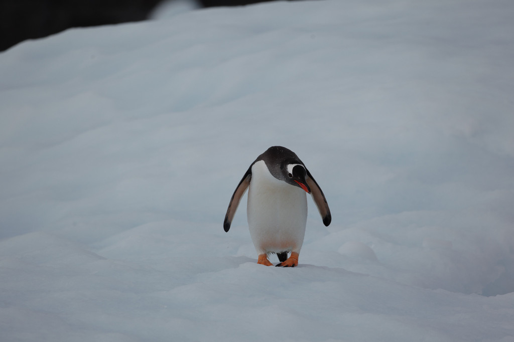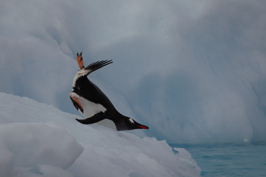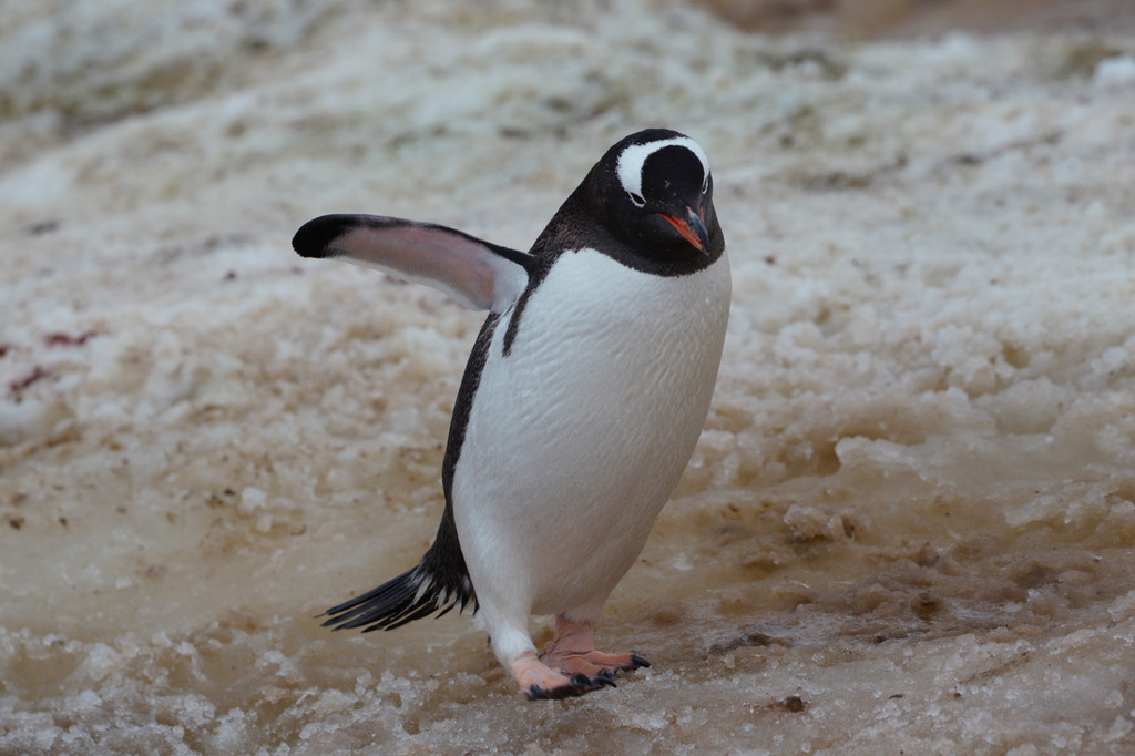 金图企鹅主要栖息于南极半岛和南大洋的岛屿上, 通常在近海较浅处觅食,主要食物为小鱼和南极磷虾。出水金图,浑圆的体态,像是刚刚捕食归来,洁净的羽毛,黑白分明,红嘴点缀,极为好看,不愧是家族中的明星。