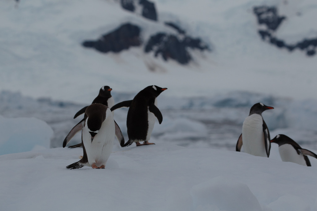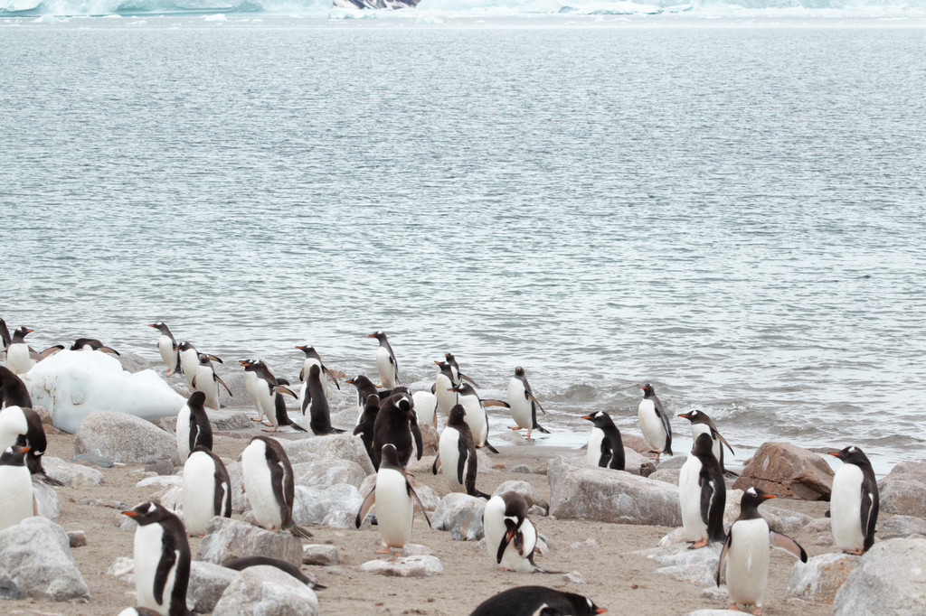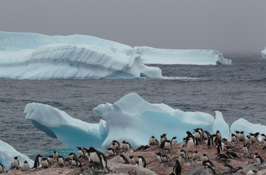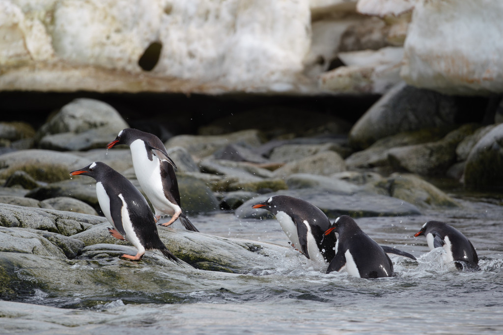 一月是南极的夏季,企鹅时而在岸边玩耍。
