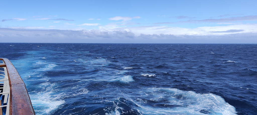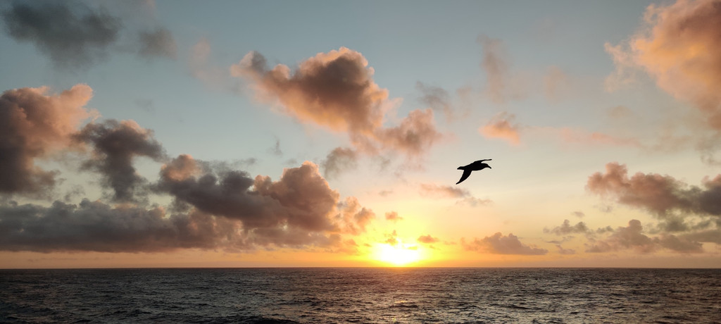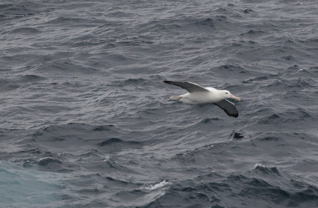 回程的德雷克海峡,没有了冰山和企鹅,但一望无际的海面。成群的南方巨鹱、灰鹱和各种信天翁追随着海钻石,它们时而空中盘旋,时而掠过水面,展翅翱翔在天水之间。在甲板拍照时,感觉无从下手,眼花缭乱。