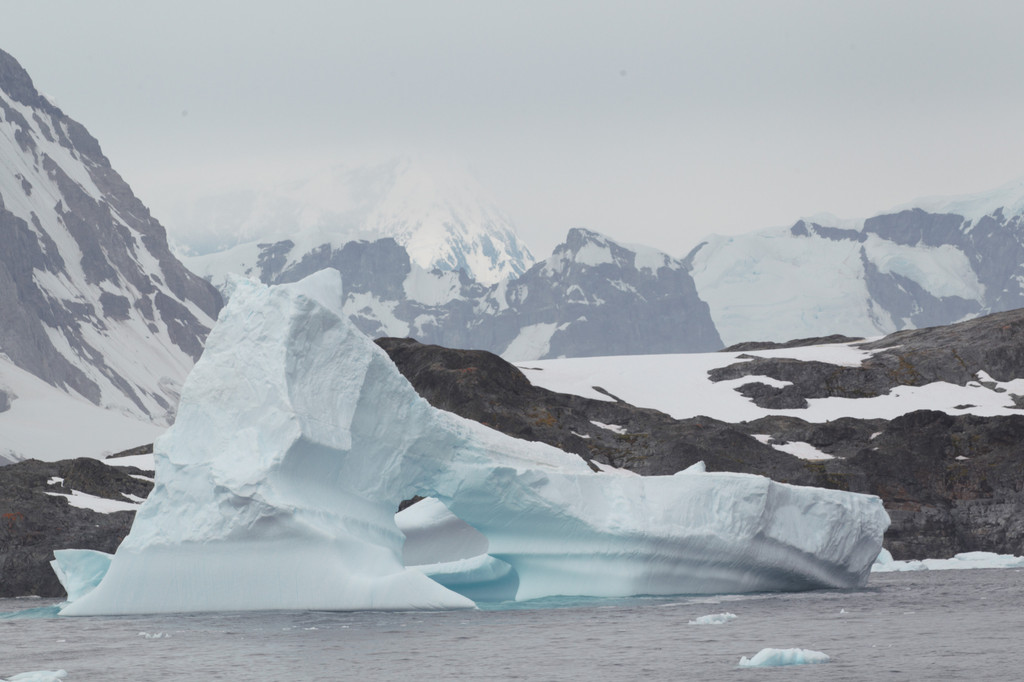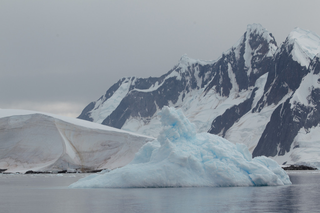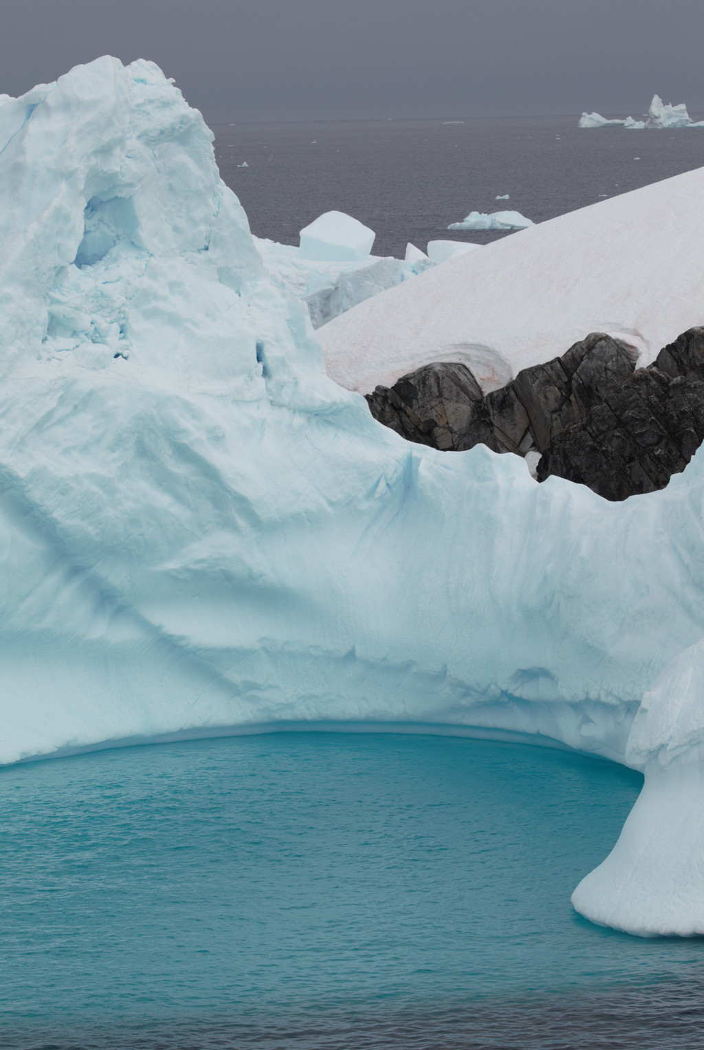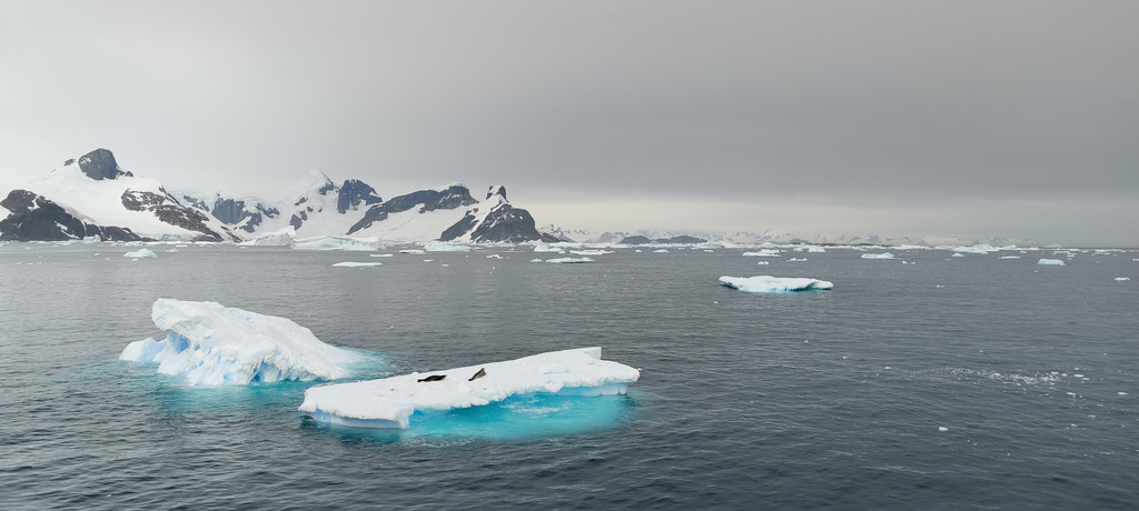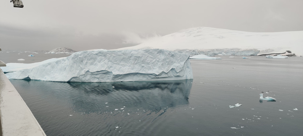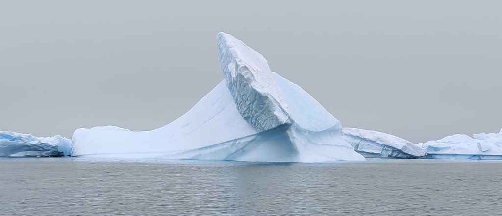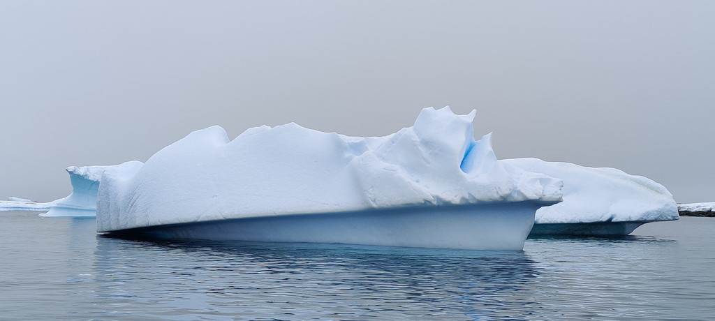 南极的水永远是灰黑色,尤其是阴天。而冰山的形状却千奇百怪,无一雷同。有的像巨浪、有的像帽檐、也有的像船只......很多冰山的水线之上会有凹槽,深度不一,这是因为裸露海面的冰山夏季会部分融化,冰山一旦变轻就会自然上跃,使原来与水线平行的冰山高出水面。假如没有这个上跃的凹槽,尤其还是斜线上升的凹槽,我们就看不到,这座极其逼真的船型冰山。南极浩瀚无际的海域,大自然的鬼斧神工,造就了无数神奇。