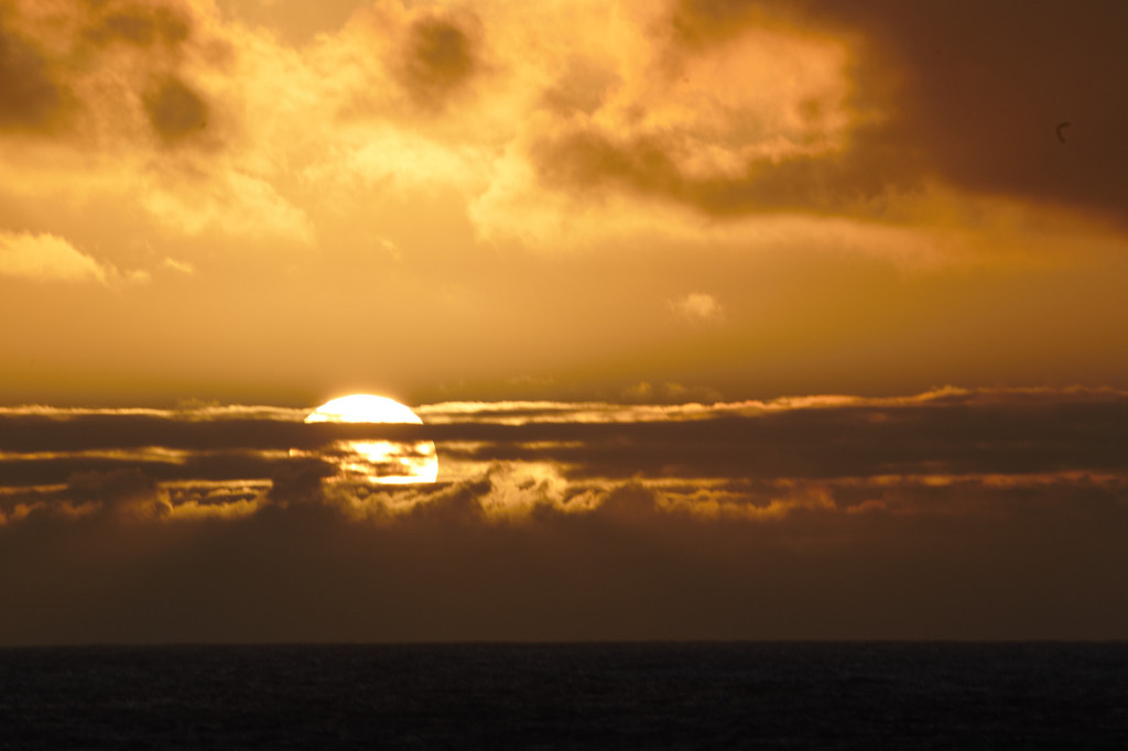 在南极登陆或巡游的几日,太阳公从未露出笑脸,而返程时的德雷克海峡,给了我们火烧云的落日。