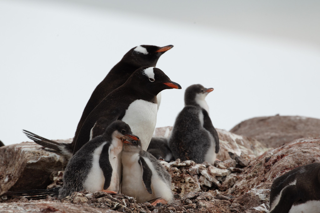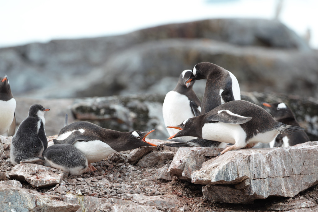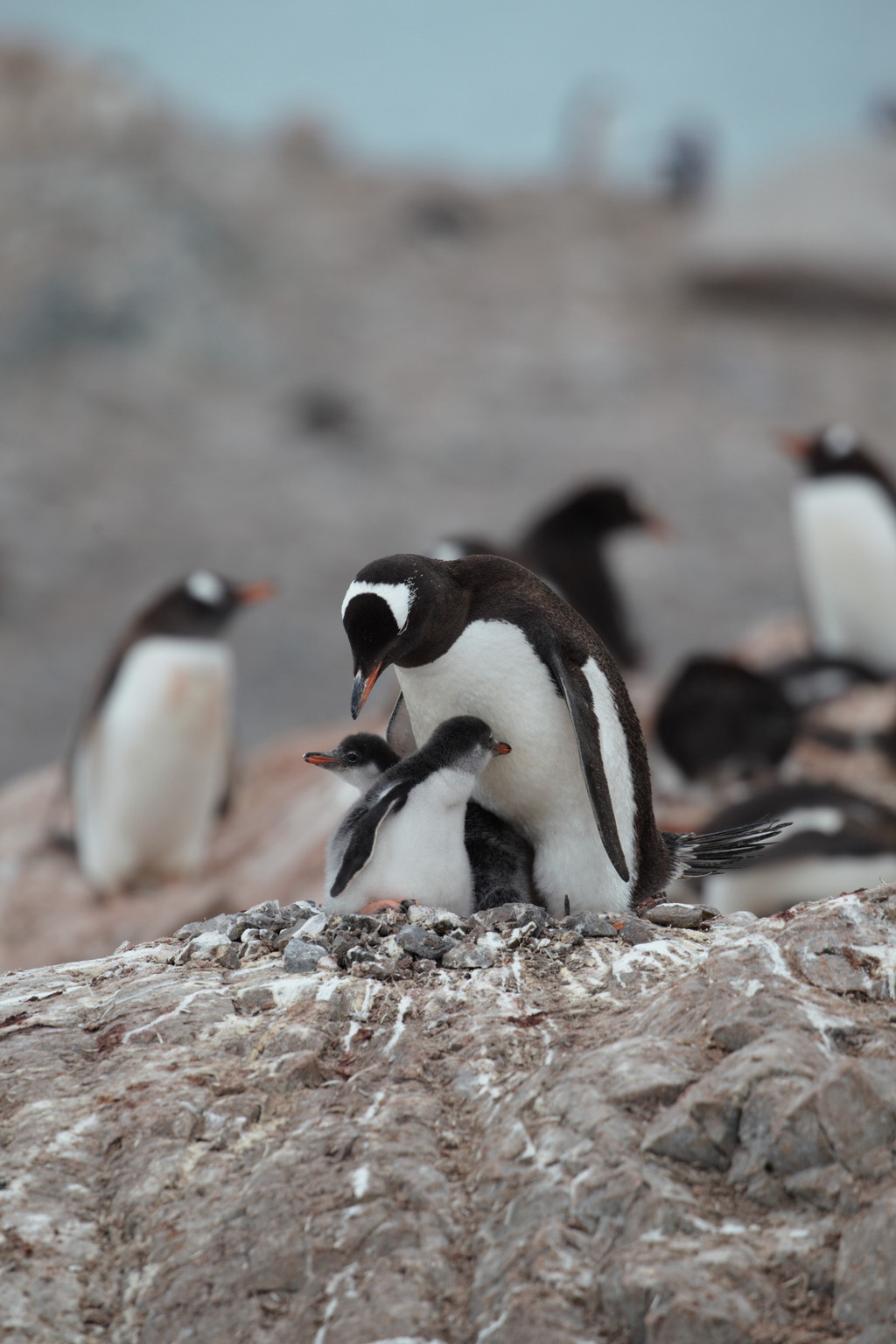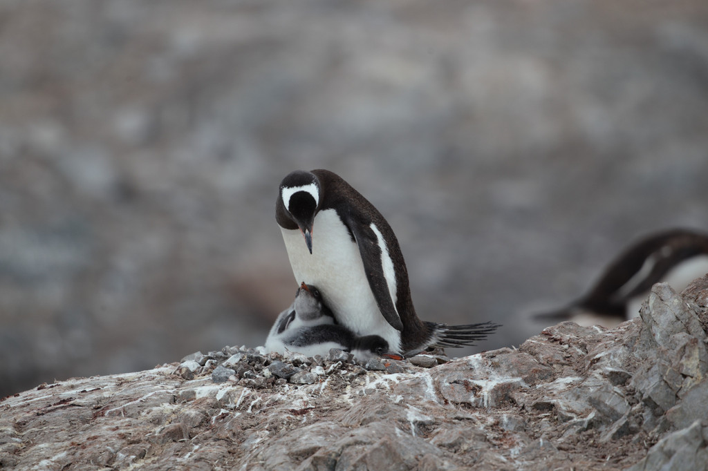 父母轮流去捕食,留下另一只企鹅和小企鹅在等待。
