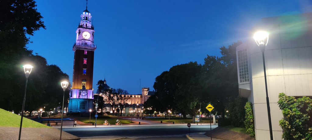 夜幕降临时,纪念钟塔灯火齐明,灯光在静谧的夜空中闪烁却不耀眼,在斑斓的灯光和朦胧的月色中,似乎感受到这个拉美国家浪漫而又温婉的气质。