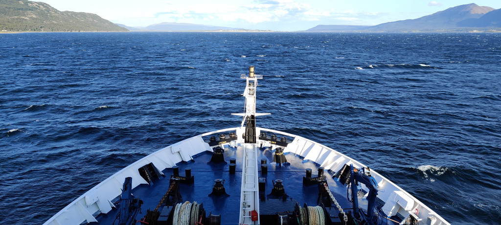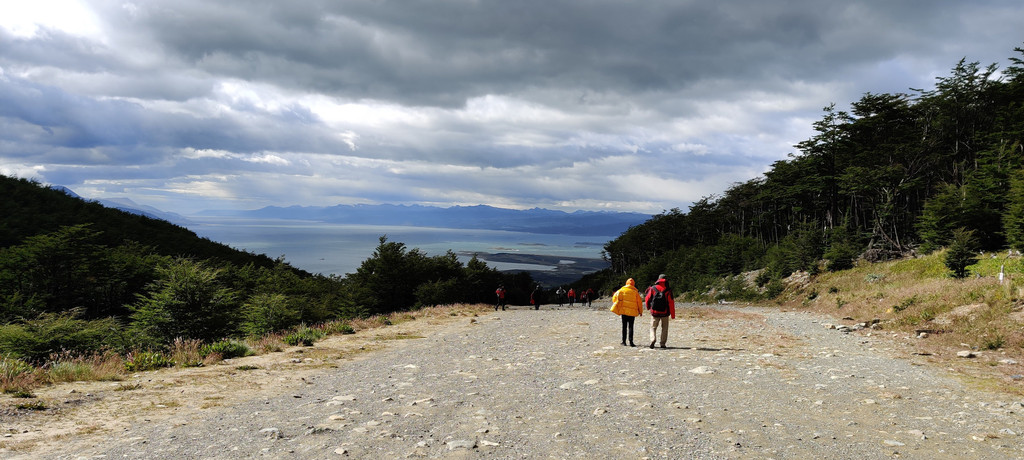 前面是乌斯怀亚港湾,远远望去天衣无缝,云海一体,极地风光无限。