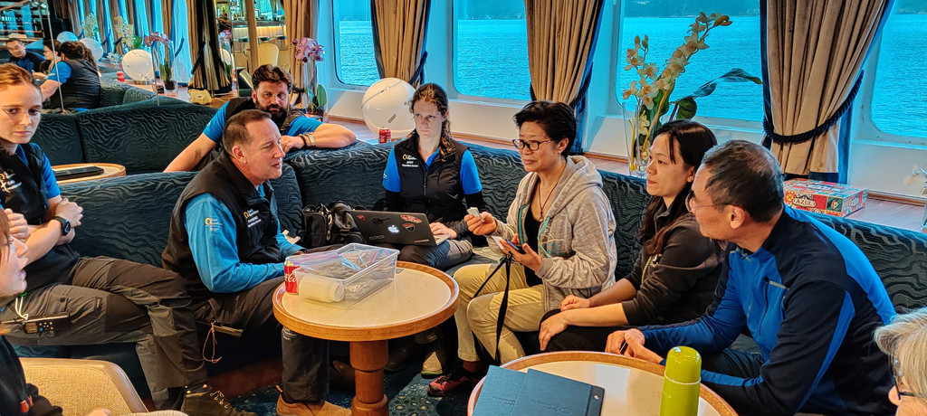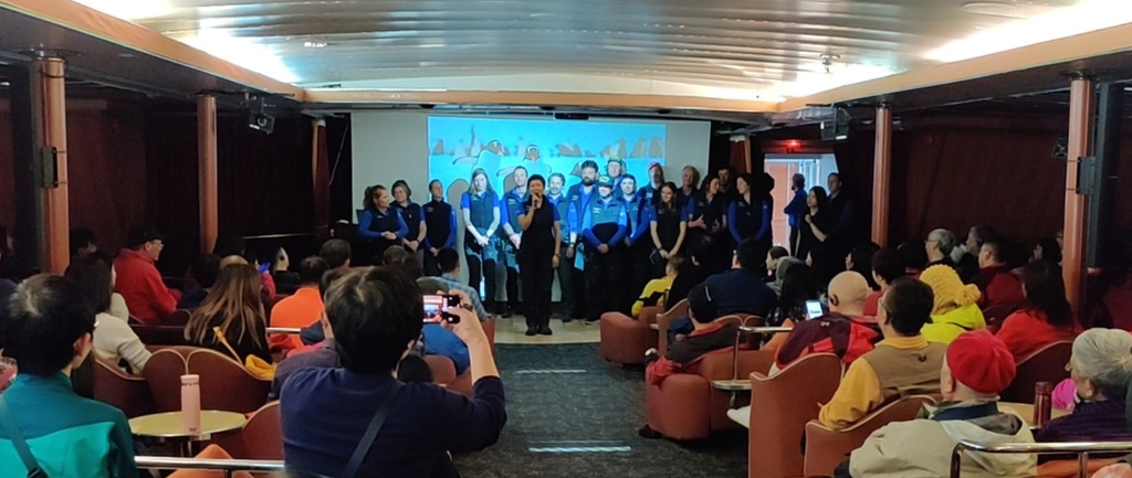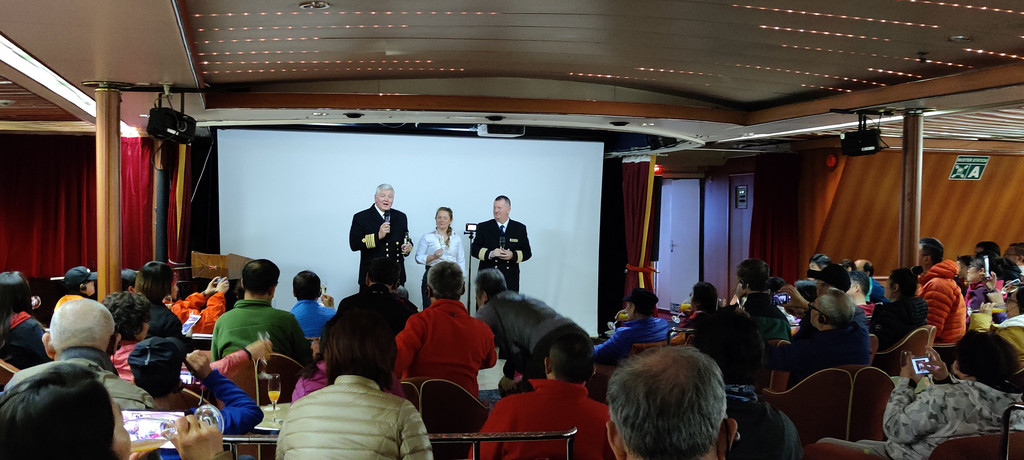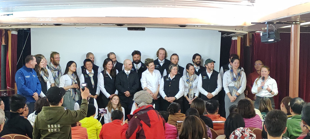 船上三巨头——船长、探险队长、商务部长致辞,南极之旅圆满结束。