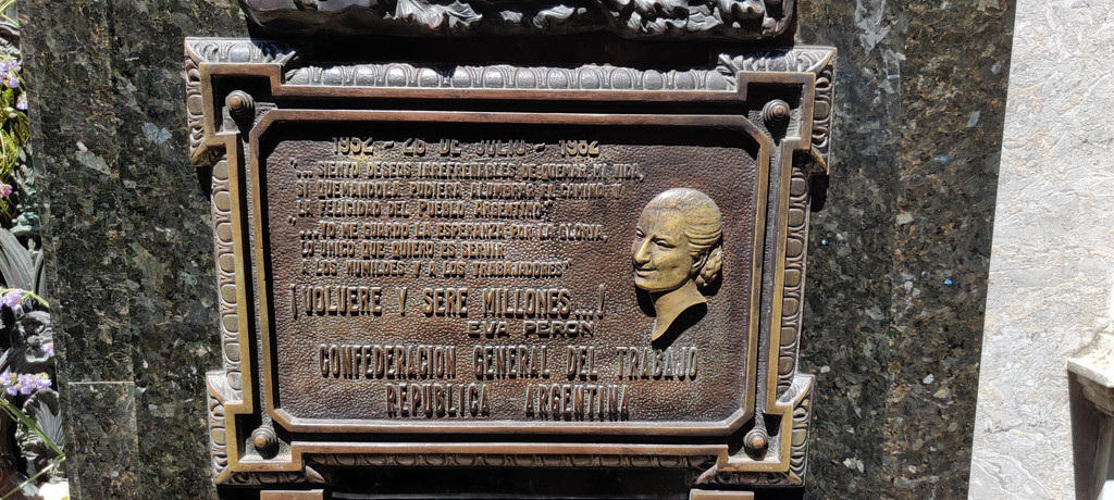 这里是《阿根廷别为我哭泣》的主人公,贝隆夫人的墓室。这位阿根廷曾经的传奇人物,由于当时政局动荡,死后遗体被秘密送往欧洲,几经周折,最终从欧洲运回阿根廷,按照娘家意愿安葬于此。