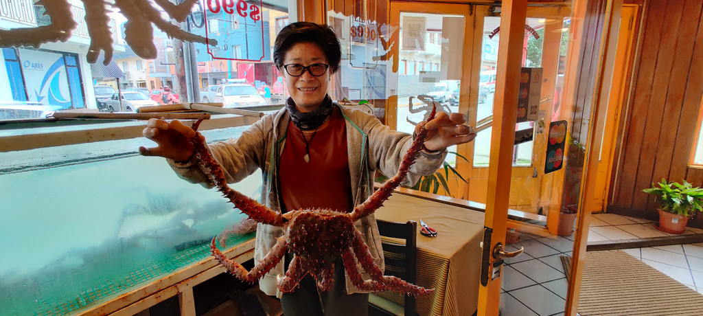 回程时,品尝了心念已久的帝王蟹,味道很鲜美,吃起来比任何一种蟹类都要爽,主要是蟹大肉很多。但帝王蟹并不是随时都有,因为阿根廷对帝王蟹的打捞有严格的规定……所以我们在回程时提前预定,才能吃到如此的美味。
