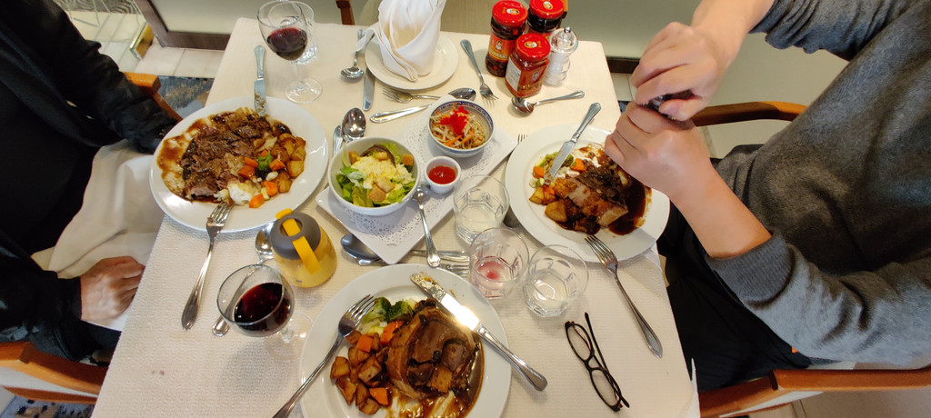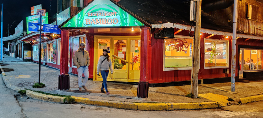 竹子餐厅和蔼的阿根廷老人,他烤的羊排色、香、味,是我吃过最棒的没有之一。我们去南极往返乌斯怀亚的三餐都安排在这里。每餐必点一份烤羊排,而且一定要肋排哈。在最后一餐吃了大半只帝王蟹后,我还居然又点了一份羊排,美食捕获了胃口无法抗拒。
