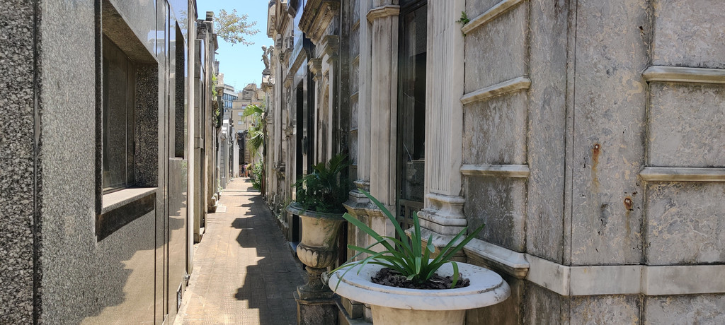 两侧多排公墓间距不足两米,鳞次栉比的墓室紧贴一线。阿根廷这个民族,他们对死亡纪念之重视,要远远超过出生时的庆祝,因为他们认为出生时,人生刚刚开始,只有在死亡时,人生的过程意义才会完整的显现。