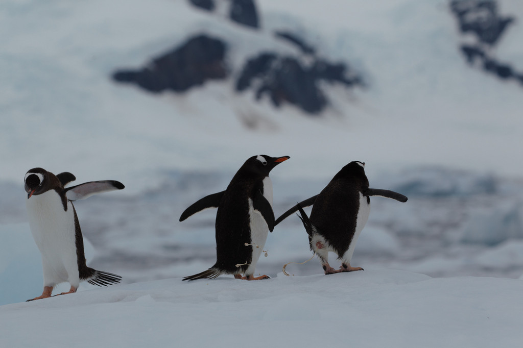 企鹅在我们身旁穿行,若距离近五米时我们止步让行,这在南极是明文规定。