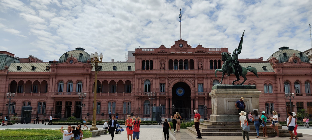 五月广场—玫瑰宫也叫总统府,是总统办公之地。总统是否外出就看上面国旗的升降,我们来时总统在办公,因为旗子在飘扬。导游讲,总统上班乘坐直升飞机。
