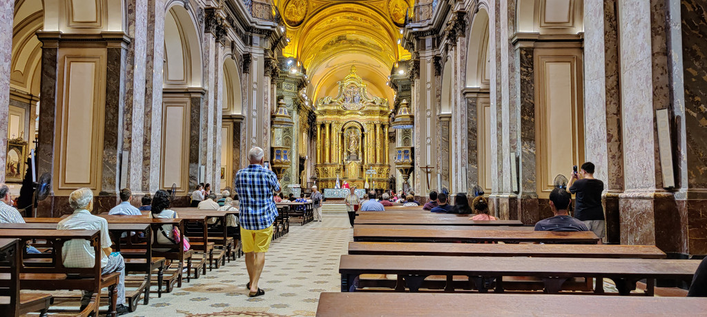 五月广场——天主教堂外,肃穆的墙壁上挂有熊熊燃烧着的火炬,这就是著名的“阿根廷火焰”。这火焰是1950年为纪念圣马丁逝世100 周年开始点燃的。火焰下面的铜字是:“这里安放着圣马丁将军和独立战争中其他无名英雄的遗体”每到国庆日、名人纪念日以及平日里,人们都会前来教堂缅怀和祭奠。