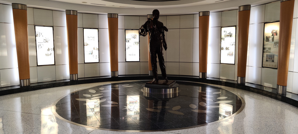 休斯顿机场也叫乔治.布什洲际机场,老布什生于德克萨斯州,机场大厅中专门设有乔治.布什塑像及生平介绍。