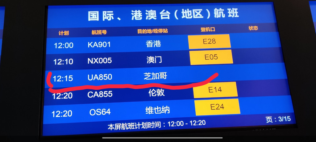 北京——芝加哥,中午12:15起飞,因有过乘机晚点的记录,早早到达,稳稳的提前了4个小时。机场值机处还未上班。
