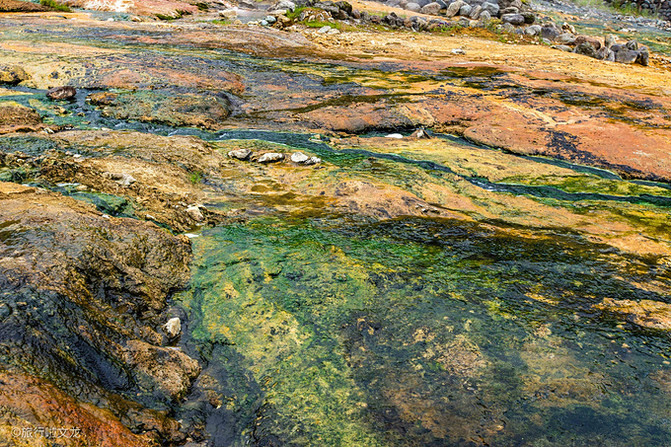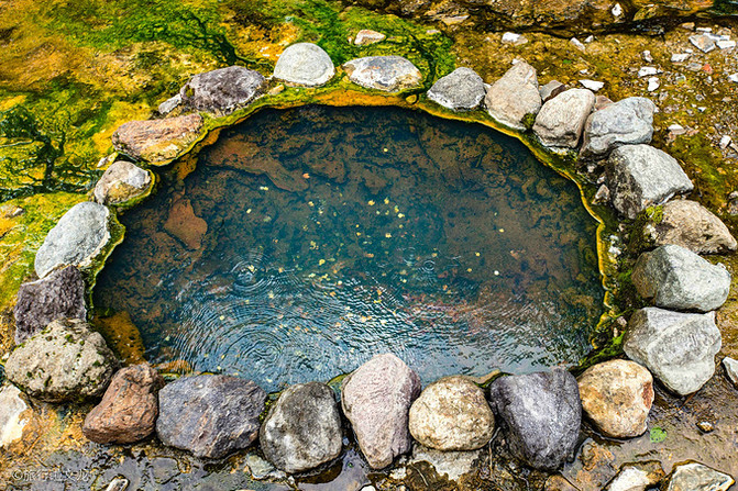 水潭边嫩黄鲜绿的苔藓肆意的生长,使得脚边十分光滑,水流淌过之处,皆留下了一片清凉。