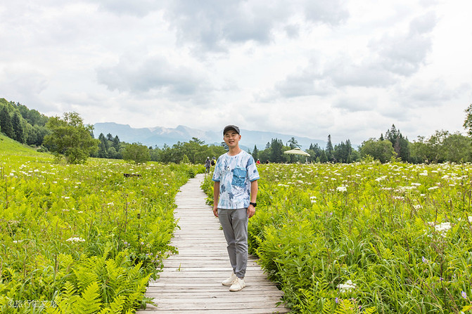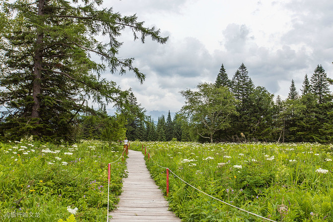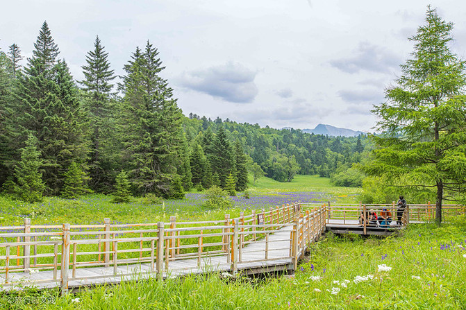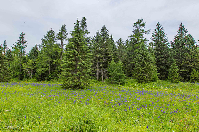 背着轻盈的行囊,我们走入了夏日里的清凉之地——长白山西坡,它位于白山市抚松县松江河镇地域内,因为开发的较晚,所以现代化的建筑在这里比较少见,而绮丽的自然景色却满眼皆是。我首先到达的是鸢尾花园,许是刚落完雨的缘故,郁郁葱葱的草地上还蒙着一层浅浅的水珠,晶莹剔透。