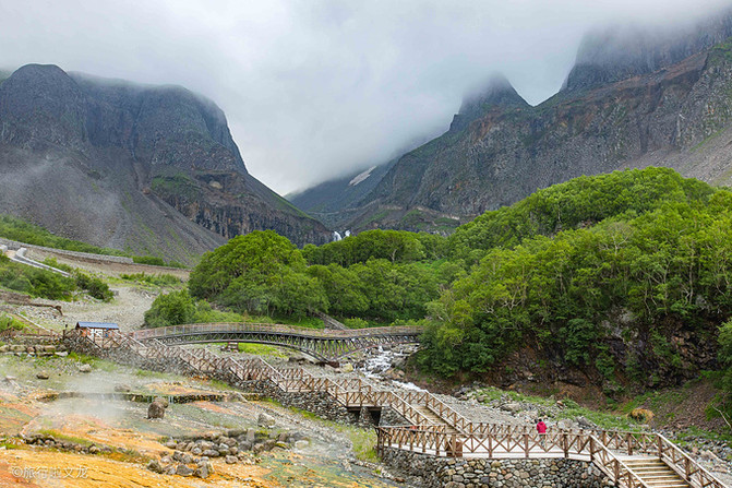 平淡的花园观赏过后,就想要寻求点视觉上的冲击,随着同行的游客,我们一路来到了长白山锦江大峡谷,踏上了林间小木桥。