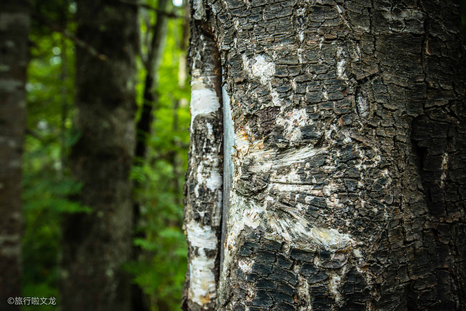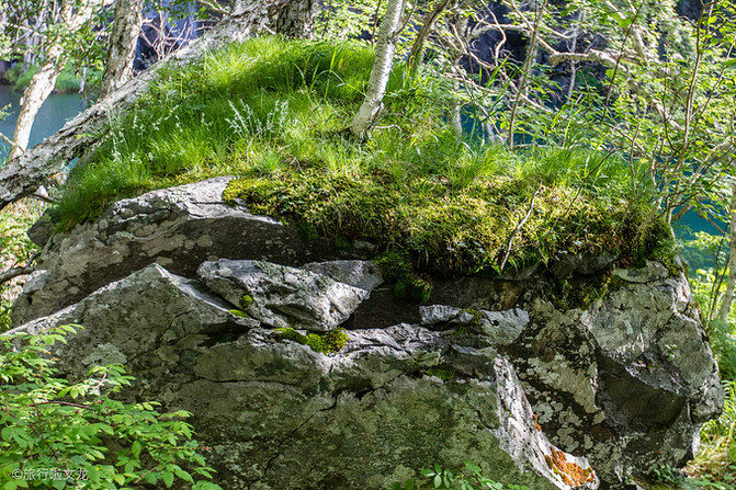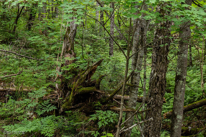 谷间的树木都上了年头,沙松冷杉的树桩为我们展现着它经历过的沧桑岁月。有些高大的树木不知什么缘故被连根拔起,横倒在谷间,任由苔藓从它的枝干缝隙中钻出生长。