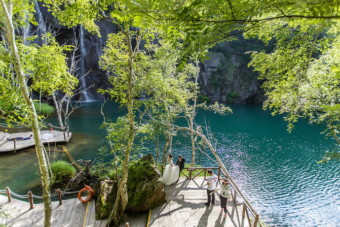 来到这的时候,大概是个良辰吉日,到处都有拍婚纱照的新人,让我不由得心生羡慕。在绿渊潭下,听着小溪淌水,闻着淡淡清香,许下对爱情最美的誓言。
