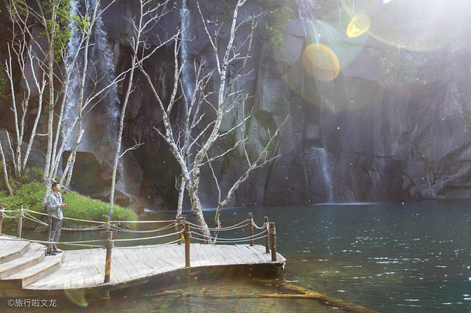 我想,曾经看过的古装剧,在这里取景,应该绰绰有余了吧,那深绿色的绿渊潭,却又清澈透亮,清澈见底,一眼望不到底。