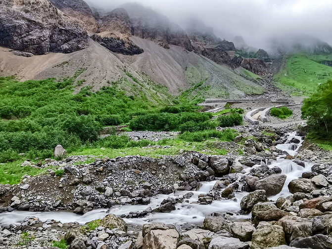 将镜头贴近地面,更是另一种奇观,如云雾般奔腾的溪水衬托的草木更加青翠欲滴,大自然的奇观在我们眼前展示的淋漓尽致,让人一览无余。