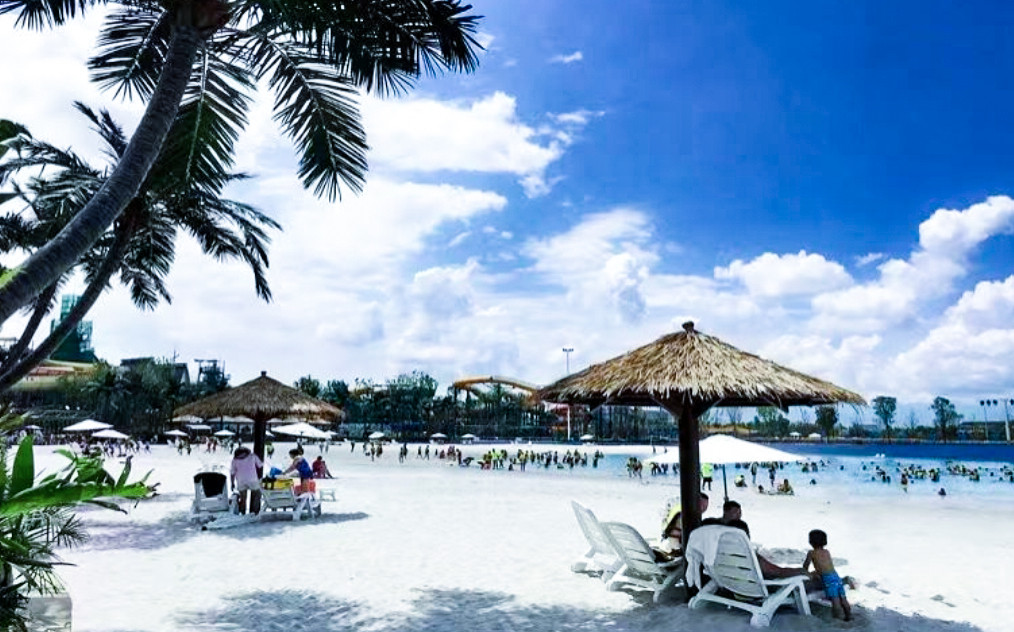夜晚的水上世界灯光绚丽,照到水面,能看到一片五彩粼粼的波光。与白天的自由轻松不同,晚上更多的是浪漫和恣意。周围的人们尽情欢笑,看着舞台上的男男女女们肆意舞动年轻的身体,自然在其中感受到了活力。夜晚刚开始,我们的生活也才刚刚起步。值得一提的是,乐园里的沙滩三万平方米,支起的架子又装饰地浪漫无比,所以自然是情侣们约会圣地。