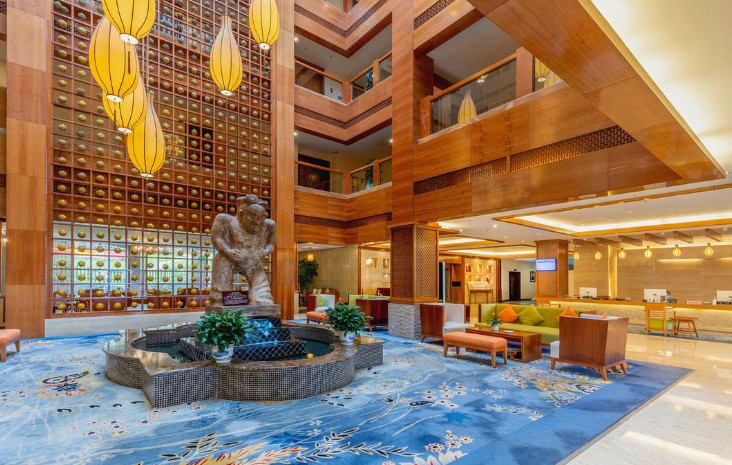 夜晚在罗浮山绵州酒店,它占地180亩,是以天然温泉为底蕴,集旅游度假休闲、亲子度假、医疗保健、养生健身、宾会中心、餐饮中心、温泉中心、别墅等功能于一体,罗浮山绵州酒店绿化面积90亩,占酒店面积二分之一。在罗浮山绵州酒店您可以享受到42-45摄氏度稳定古海洋水,山水相望,花香鸟语。漫步其中,恍若仙境,开放性大草坪,罗浮山绵州酒店超大的静谧户外空间,可以玩闹,可以游戏,可以拍照。这一次,在大草坪上纵情享受美好时光。罗浮山绵州酒店拥有多种规格的高端酒店客房,将山居的优雅隽逸融于古典宁静的民俗建筑中。形成现代与传统、时尚与古典相融一体的整体风格,营造出优雅之余、尊崇人文的理想空间主题。童梦欢乐小屋由一个个可爱的卡通巨蛋馒头小屋组成,布满山坡上。漫步在馒头屋之中宛如进入了一个梦幻的童话世界,五彩缤纷的装饰,墙壁精美绘画,真的就像进到心中曾幻想的童话屋那般。它以健康为欢乐主题,有像云朵形状一样的攀爬区域和色彩丰富的游乐器械,在温馨的住宿环境中收获难忘的旅行体验。