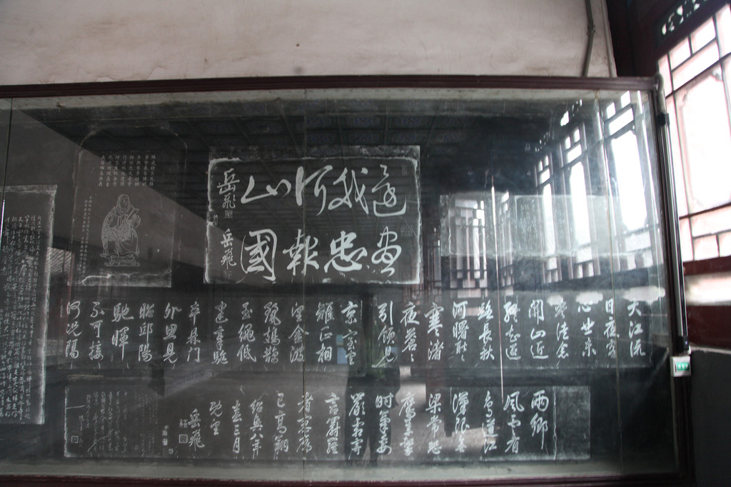 陈列的是岳飞的一些书法作品石刻,非常珍贵