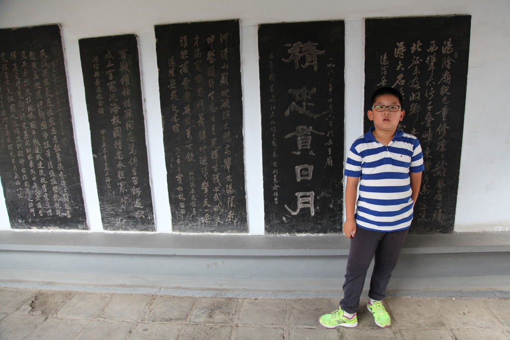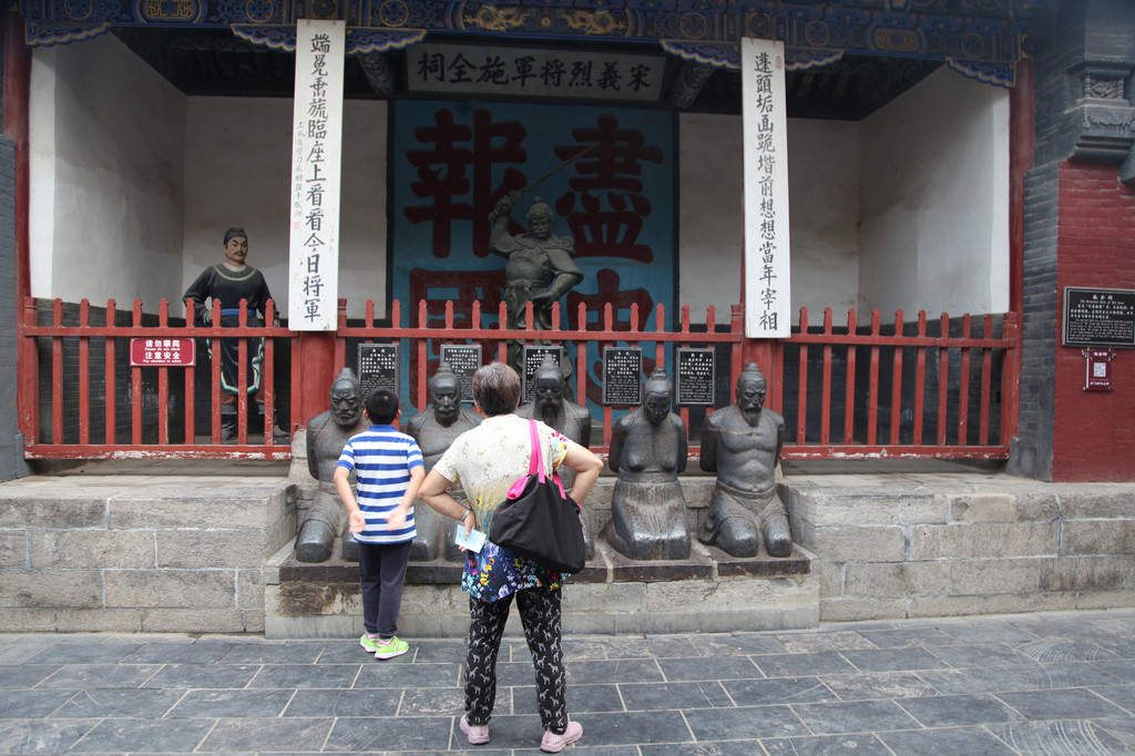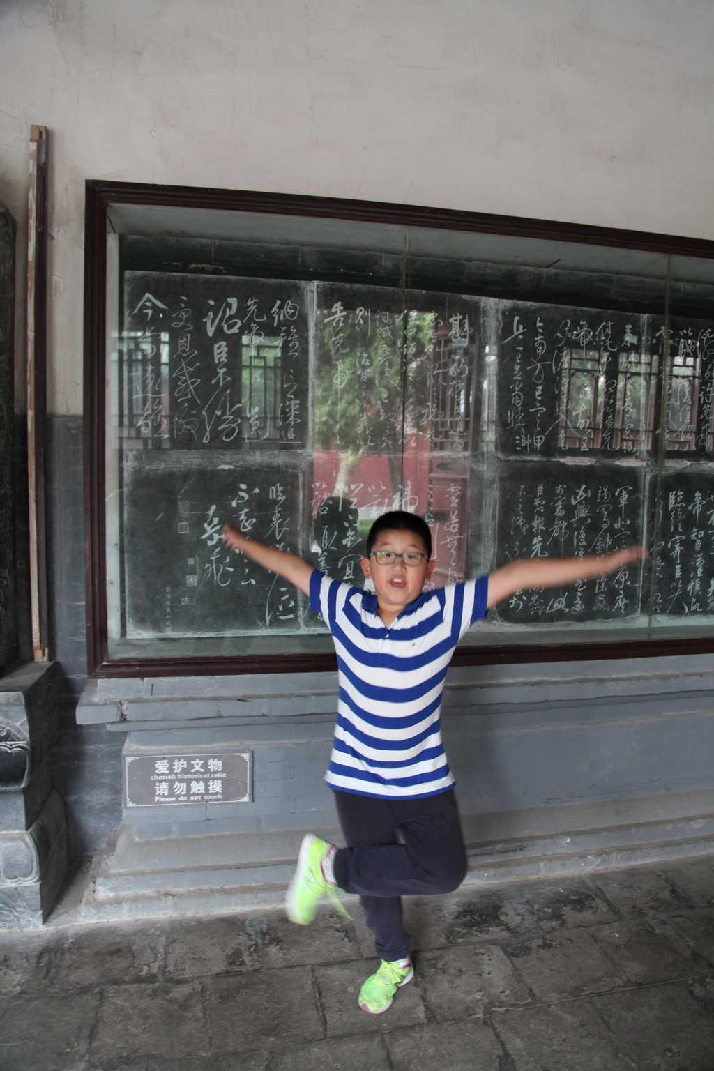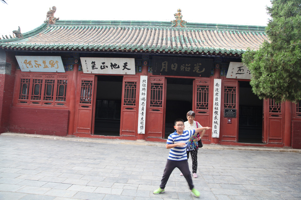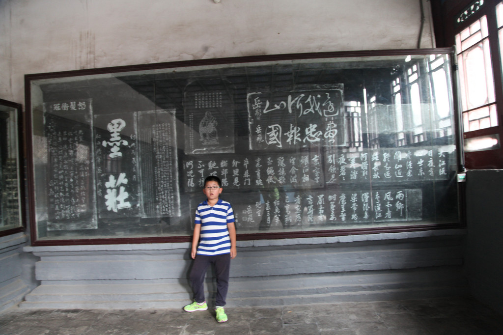 孩子前年去过杭州岳王庙,对南宋的抗金故事和历史典故有所了解。汤阴的岳王庙,设计精致,内敛壮阔。过道狭小,里面别有洞天,豁然开朗。