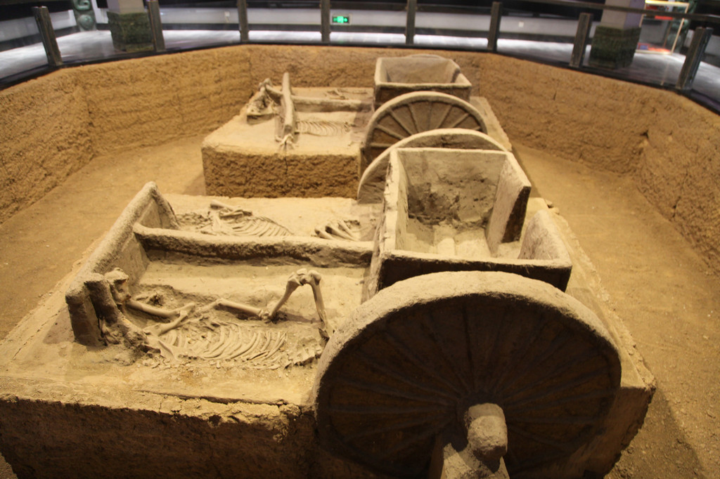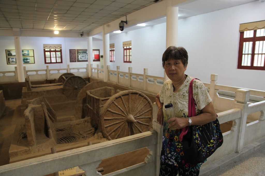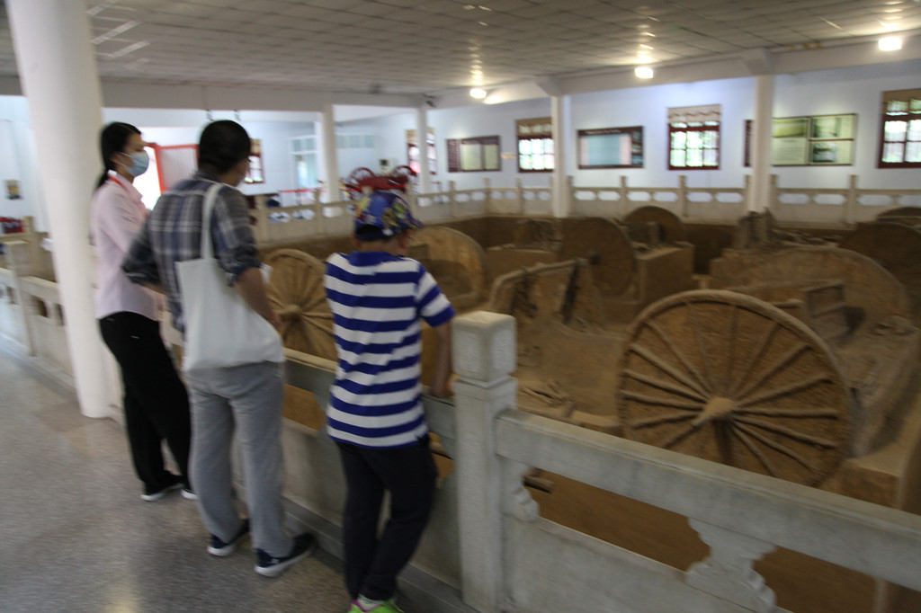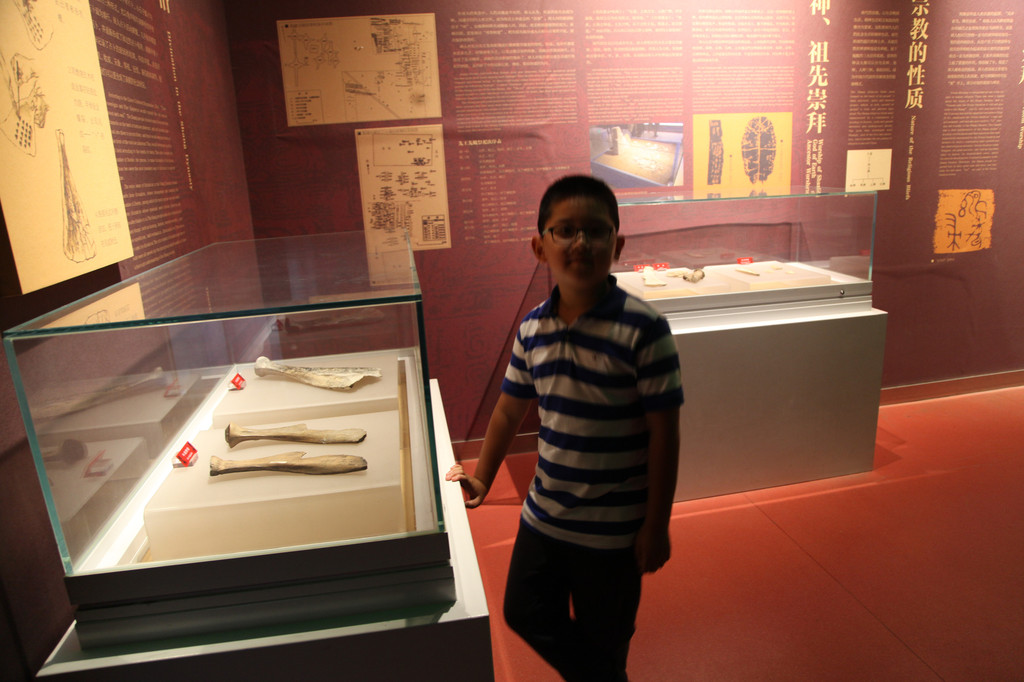 随后,龙太子跟着导游姐姐,一起去参观《YH127甲骨窑穴展厅》、《车马坑展厅》陈列展馆,了解30年代安阳发现甲骨文时,科学家和考古学家们所做的考古和挖掘工作。